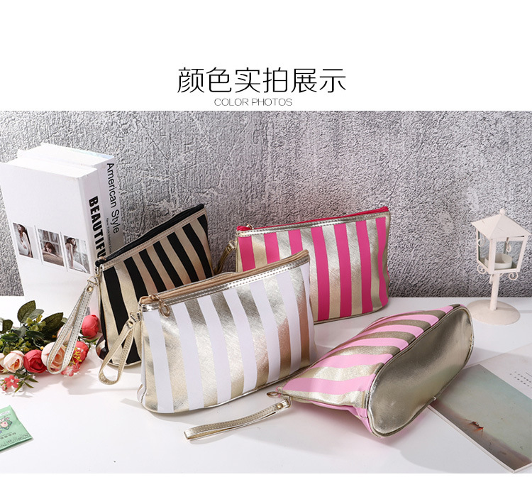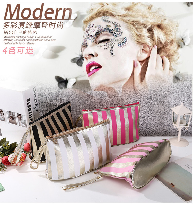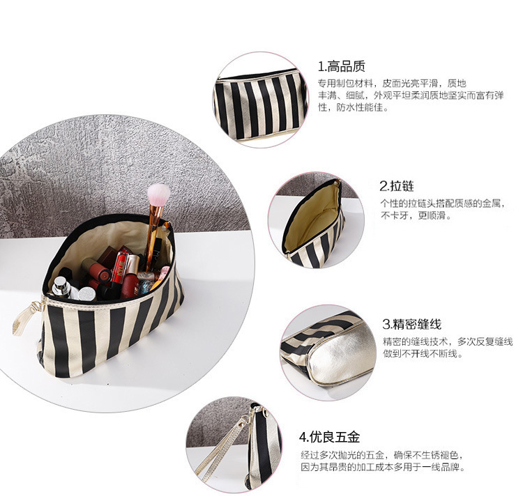 새로운 프놈펜 스트라이프 휴대용 화장품 가방 휴대용 홈 화장품 보관 가방 핸드백 공장 직공급스토어 가기