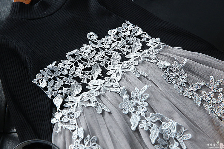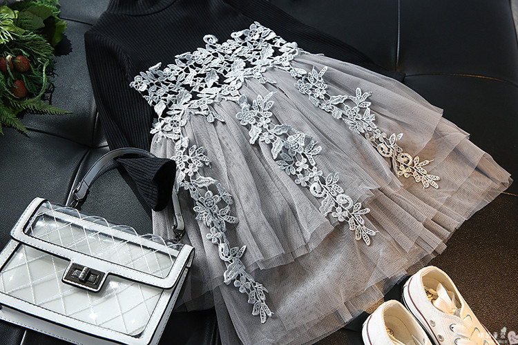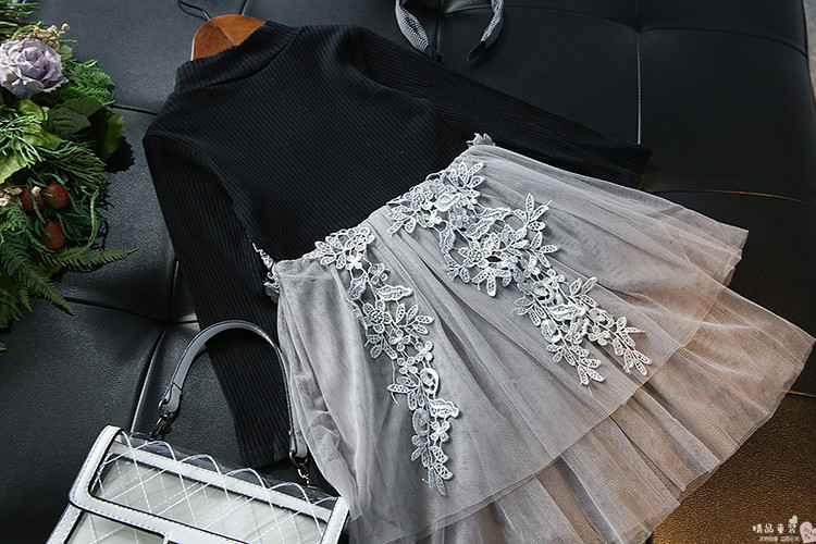 라이브 공급 2023 새로운 봄과 가을 소녀 긴 소매 원피스 소녀 달콤한 메쉬 바느질 공주 치마