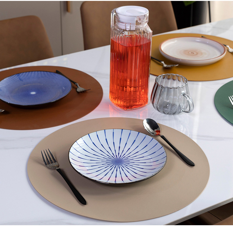 트림-라운드 PVC 가죽 장소 매트 테이블 매트 온도 조절 절연 매트 그릇 매트 커피 매트 캠핑 피크닉 매트 코스터 매트
