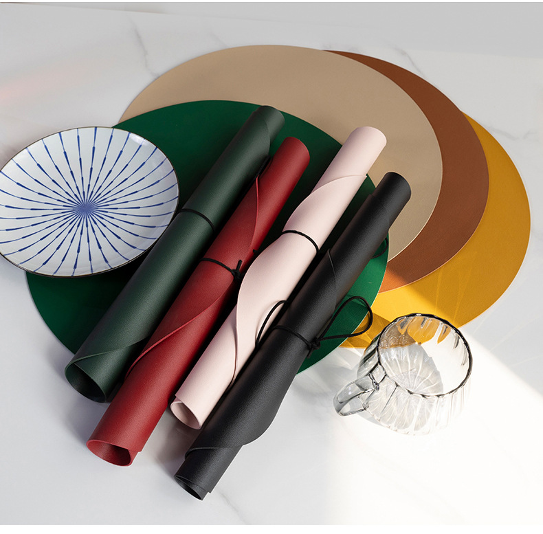 트림-라운드 PVC 가죽 장소 매트 테이블 매트 온도 조절 절연 매트 그릇 매트 커피 매트 캠핑 피크닉 매트 코스터 매트스토어 가기