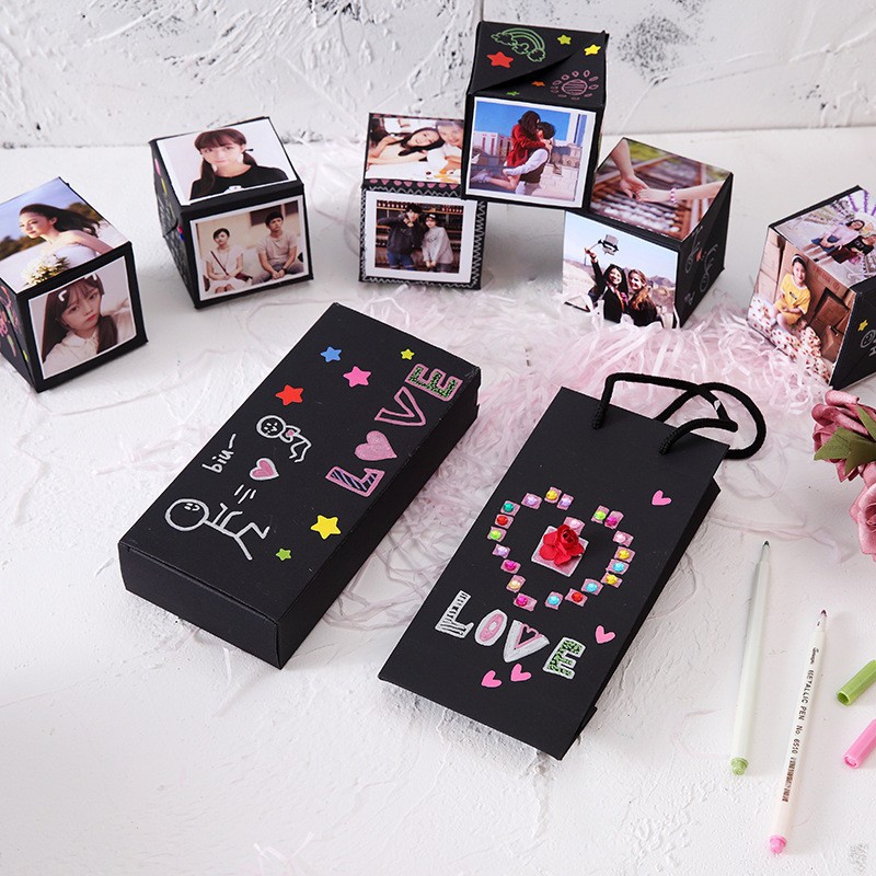 弹跳盒子:抽拉大盒+6个方形小盒+手提袋+干花标签+英文版说明书