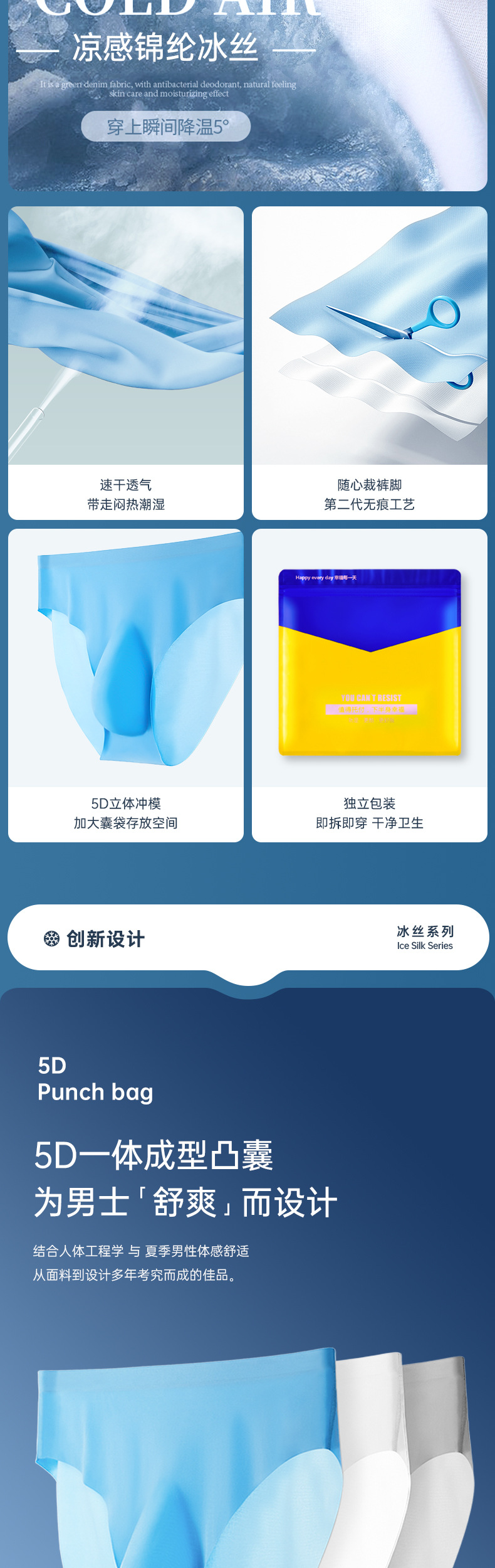 3D 볼록 아이스 실크 남성용 팬티 여름 새로운 초박형 투명 원활한 섹시 속건 유행 통기성 남성 속옷