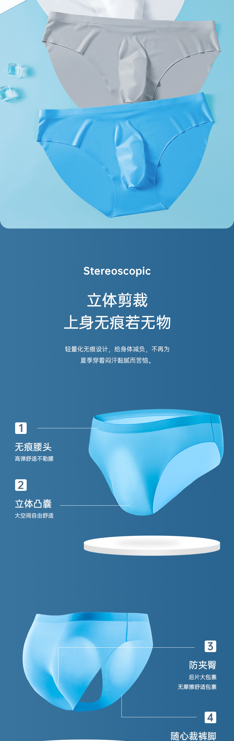 3D 볼록 아이스 실크 남성용 팬티 여름 새로운 초박형 투명 원활한 섹시 속건 유행 통기성 남성 속옷스토어 가기