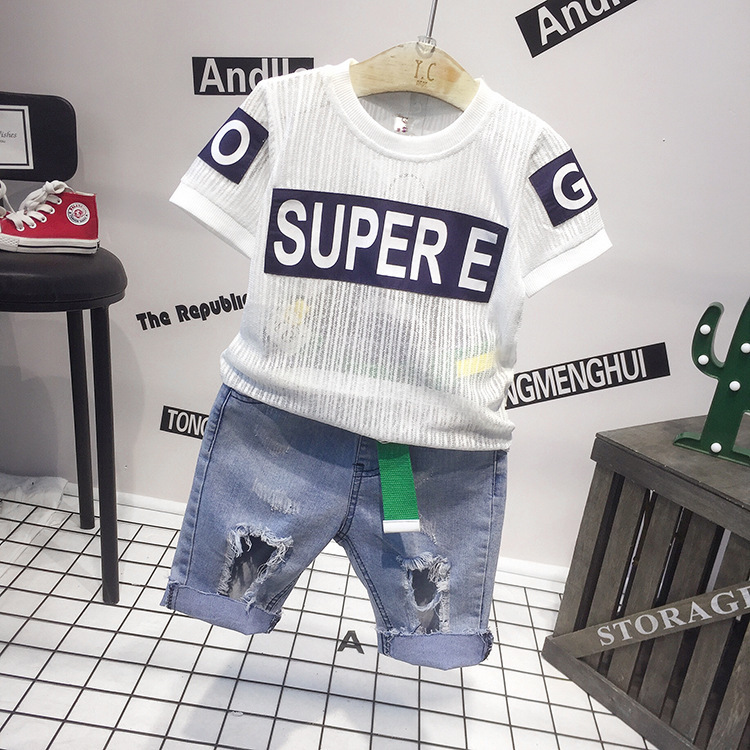 남아 반팔 티셔츠 2022 여름 새로운 한국식 중공 탑 아동 캐주얼 반팔 68011 반바지 세트스토어 가기
