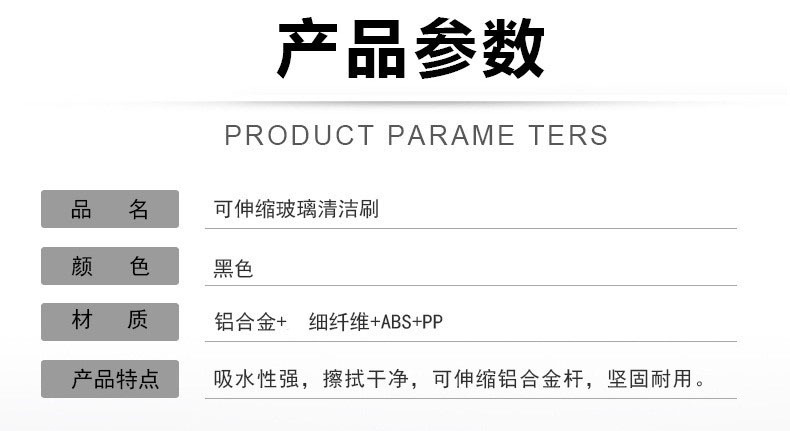 1、可伸缩铝合金杆,清洁范围大,可轻松擦洗车顶;