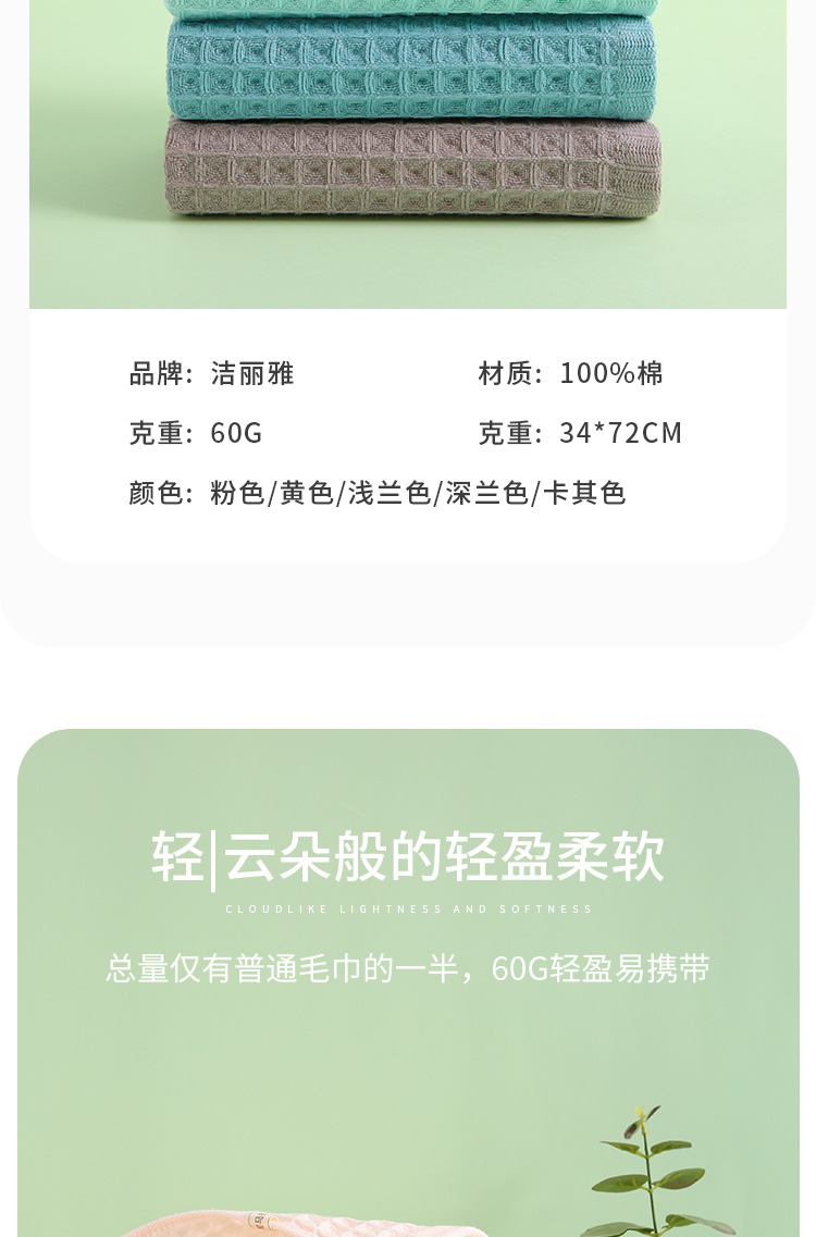 Jielia Towel Cotton Class A 면 Waffe 타월 면 항균 흡수제 빠른 건조 재고 도매스토어 가기