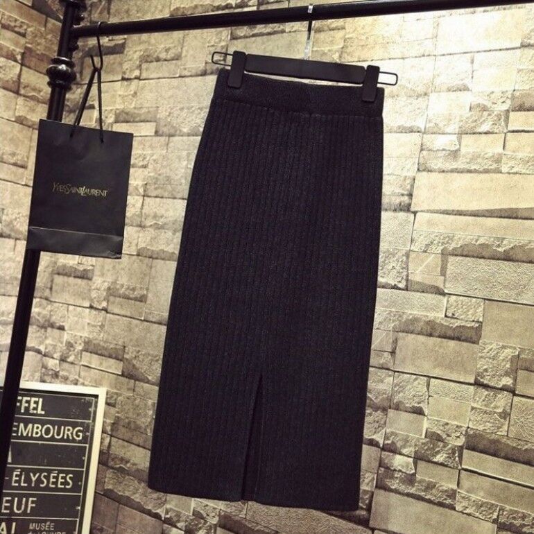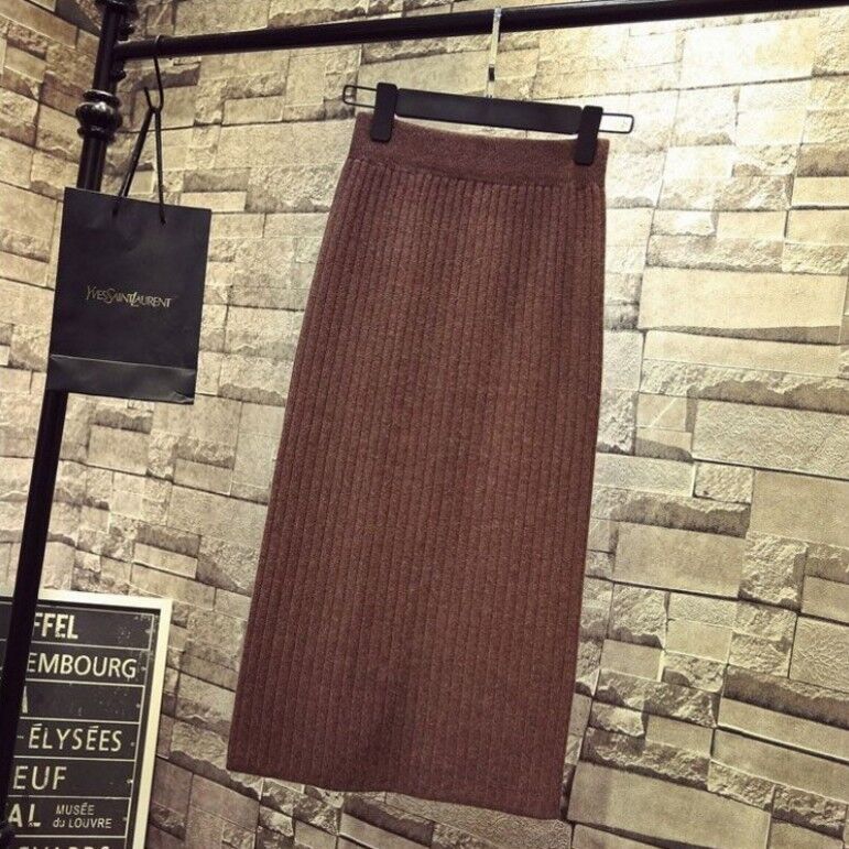 쪼개지는 한 걸음 치마 긴 치마 가을과 겨울 새 울 스커트 높은 허리 중간 길이의 니트 힙합 스커트스토어 가기