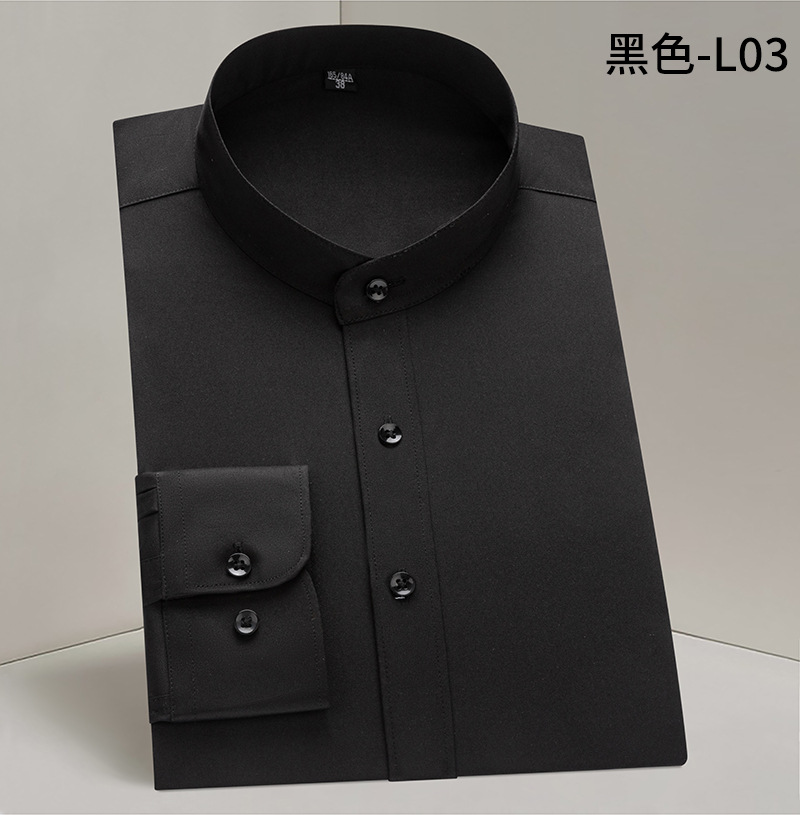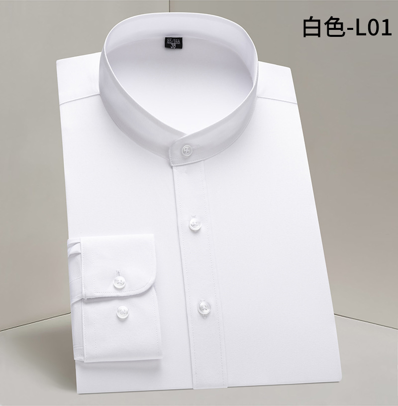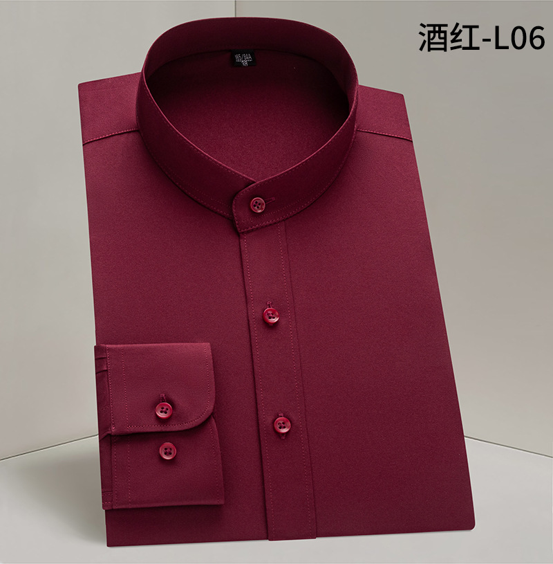 봄 가을 스탠드 칼라 셔츠 남성용 긴팔 비즈니스 캐주얼 단색 와인 레드 셔츠 슬림핏 중국 스타일 비즈니스 출퇴근용스토어 가기