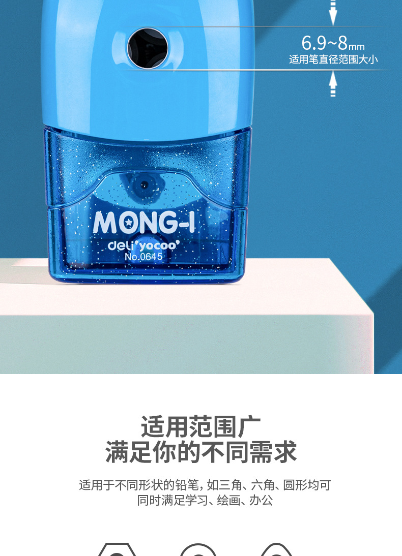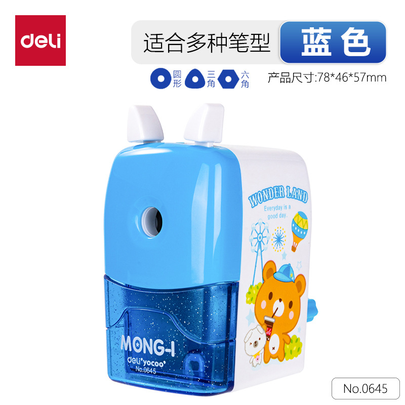 델리 0645 초등학생용 연필깎이, 핸드크랭크 아트 연필깎이, 펜칼, 무소음 컬러연필, 어린이 창의력