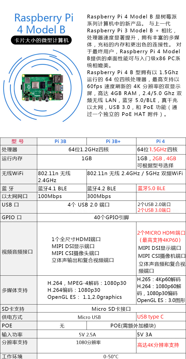 라즈베리 파이 4 세대 라즈베리 파이 4 모델 B 개발 보드 마이크로 컨트롤러 1GB 2GB 4GB RAM
