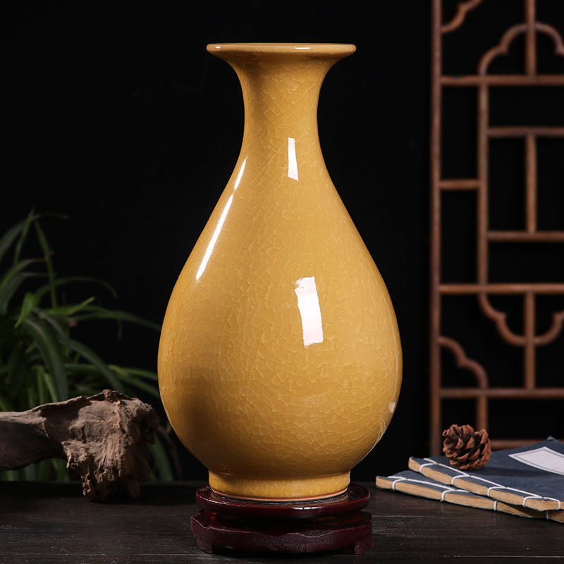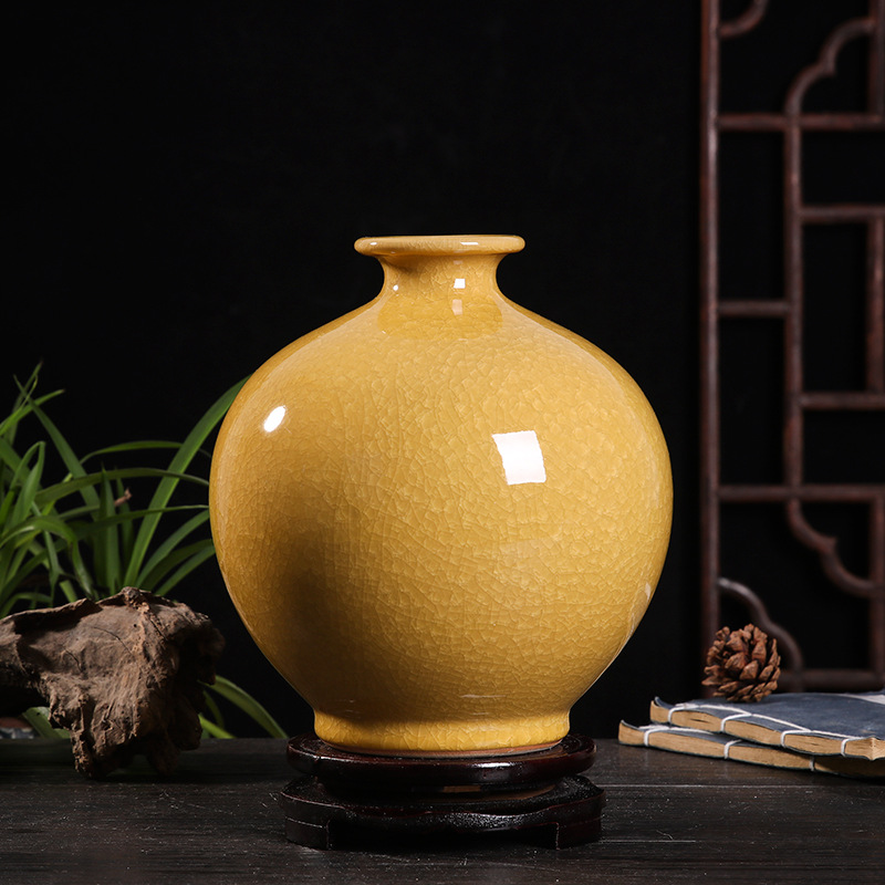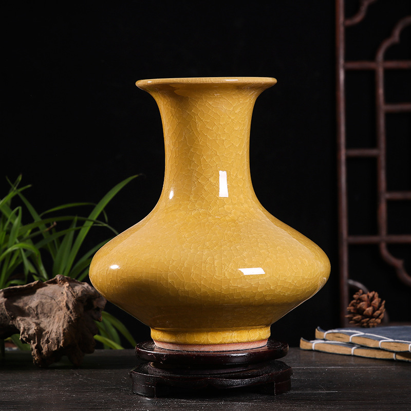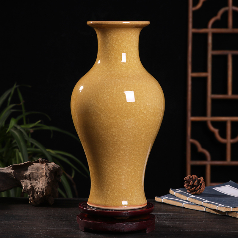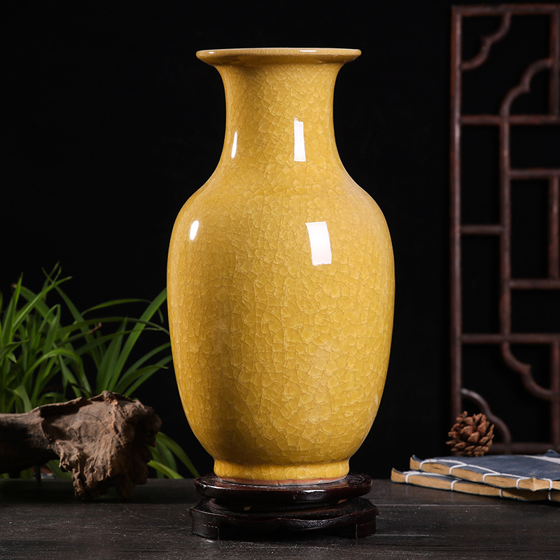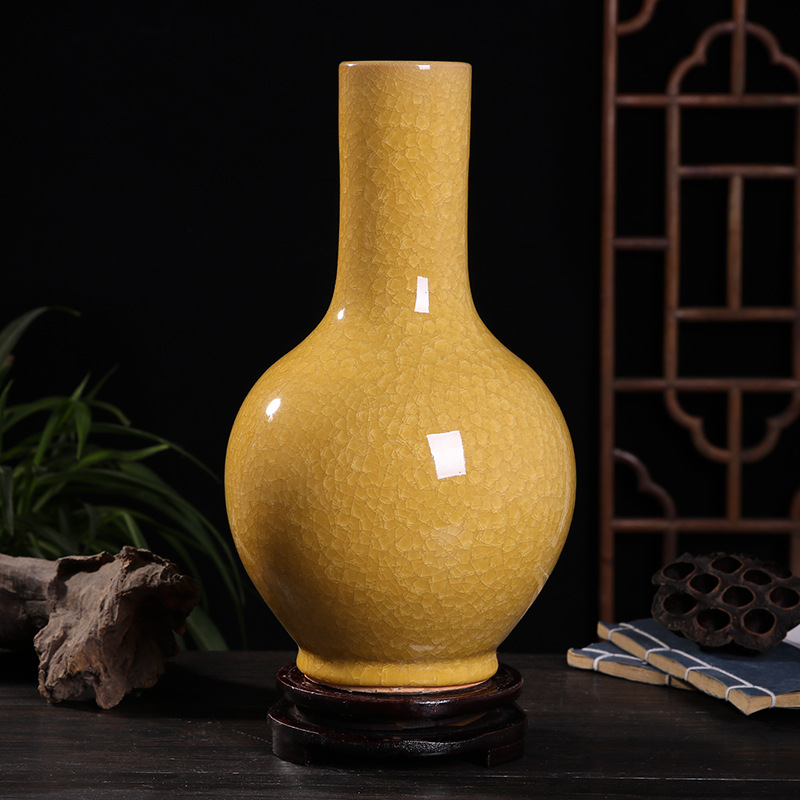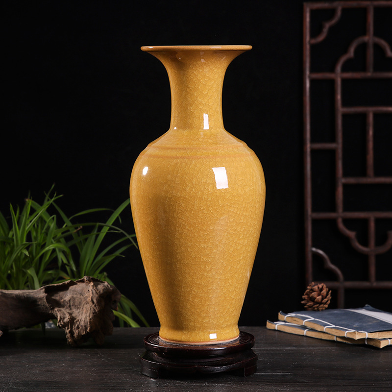 경덕진 도자기 꽃병, 골동기 공작도자기, 균열이 있는 옥조각, 노란색 장식병, 중국 전통 공예품, 꽃꽂이용 장식품