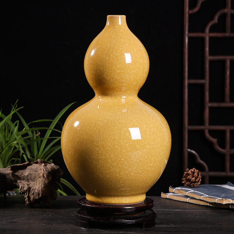 경덕진 도자기 꽃병, 골동기 공작도자기, 균열이 있는 옥조각, 노란색 장식병, 중국 전통 공예품, 꽃꽂이용 장식품스토어 가기