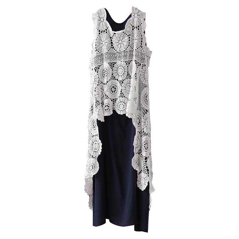 면 중공 패션 전면 짧은 후면 긴 조끼 여자의 여름 새로운 디자인 느슨한 복고풍 예술적 단색 최고 유행