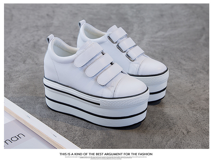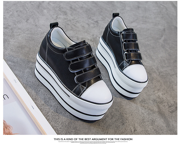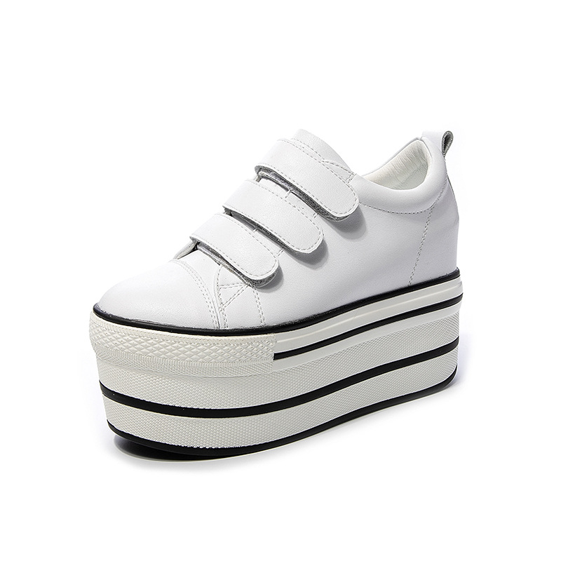 가을 새로운 여성의 싱글 레이어 신발 벨크로 플랫폼 케이크 힐 두꺼운 밑창 증가 흰색 신발 여성용 로우 탑 가죽 여성 신발 캐주얼스토어 가기