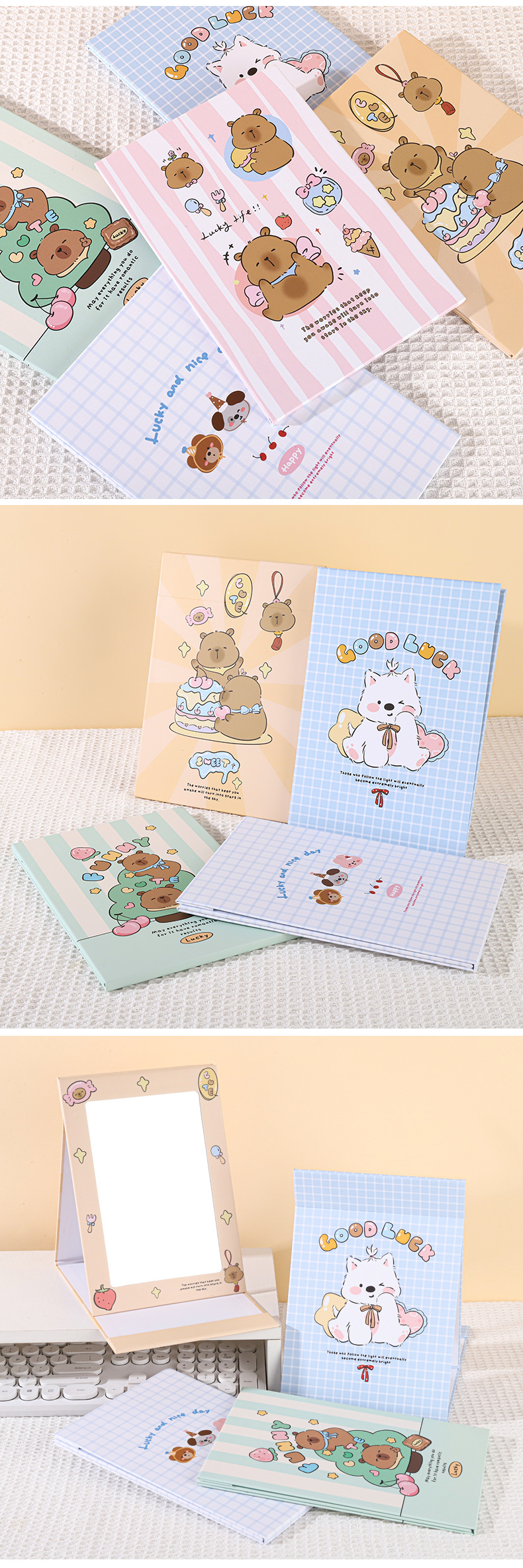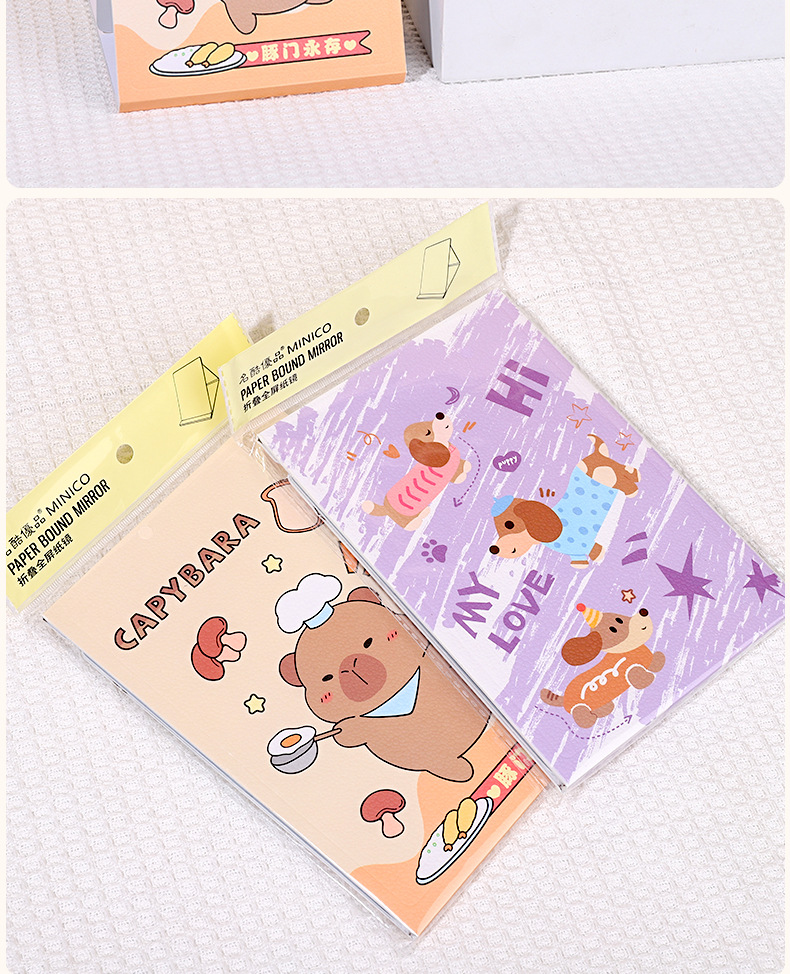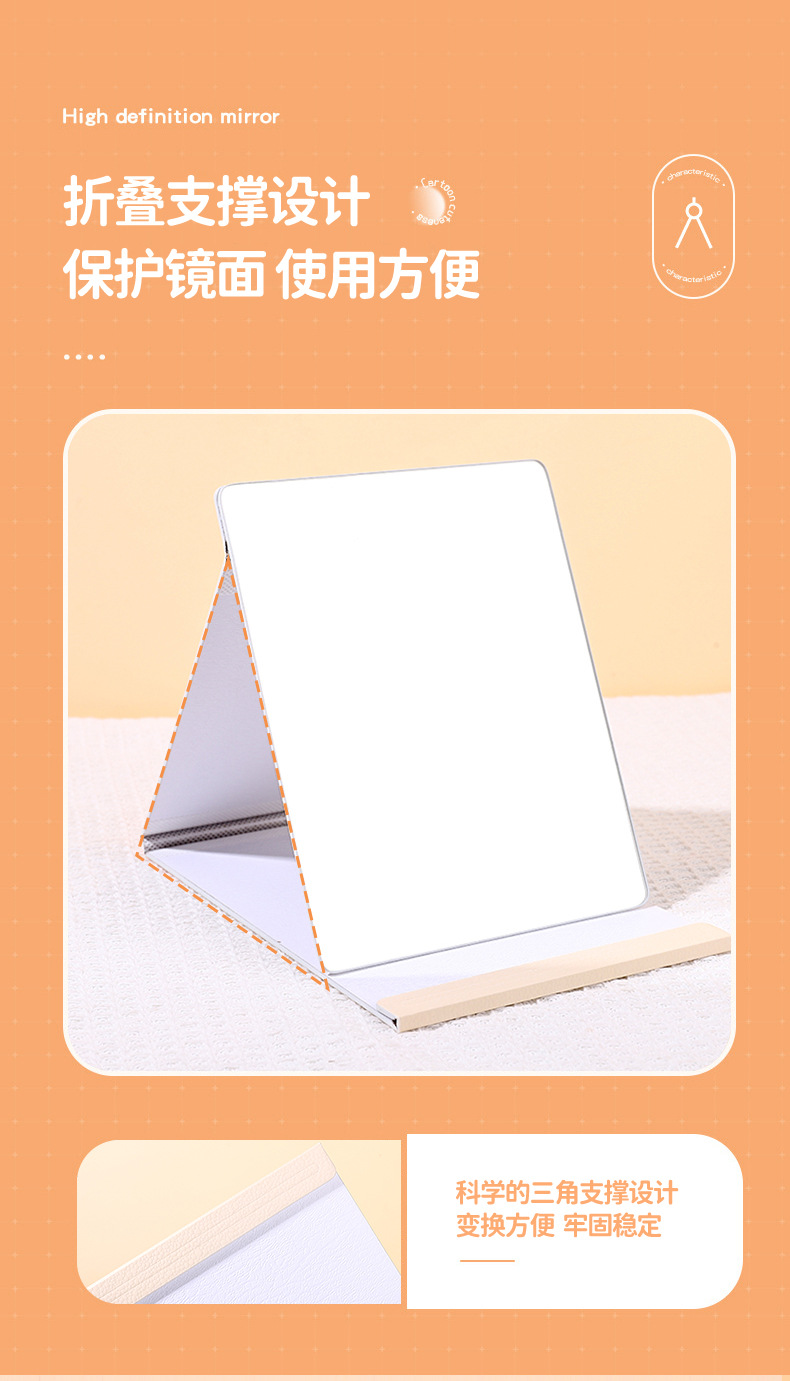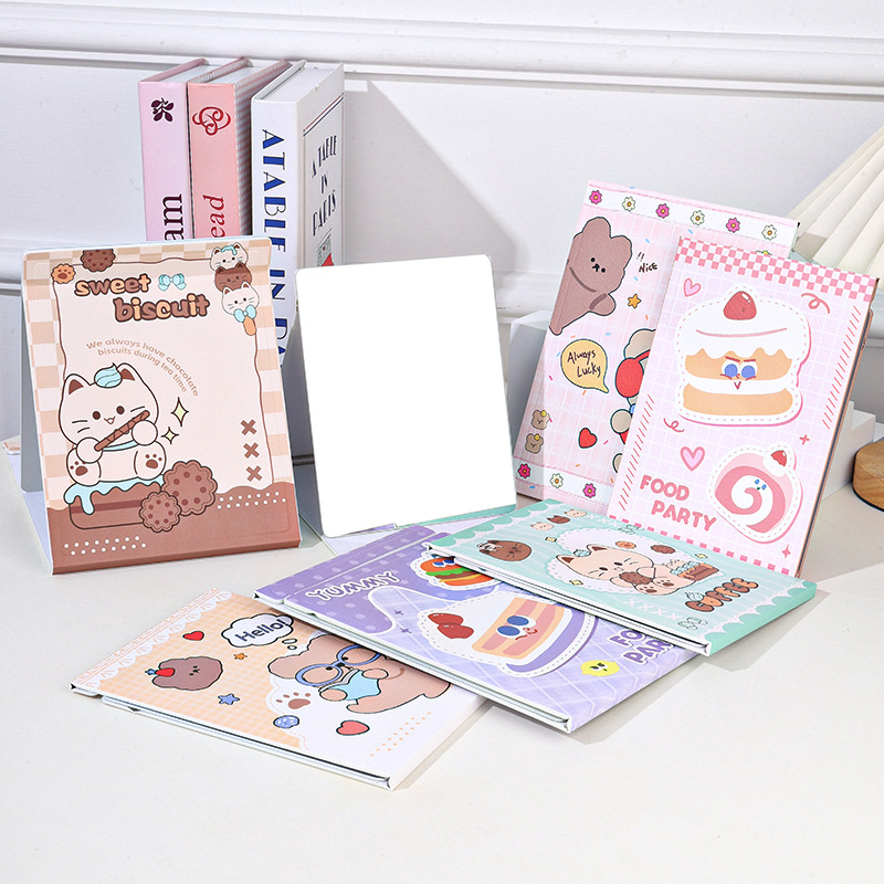 Plantronics 만화 풀 스크린 종이 거울 학생 여성 코팅 접이식 테이블 거울 화장품 거울 휴대용 초박형 뷰티 미러