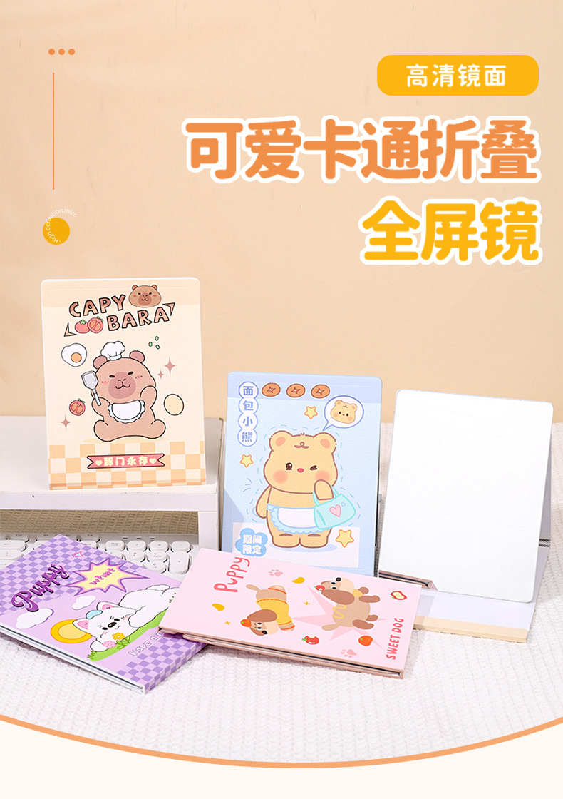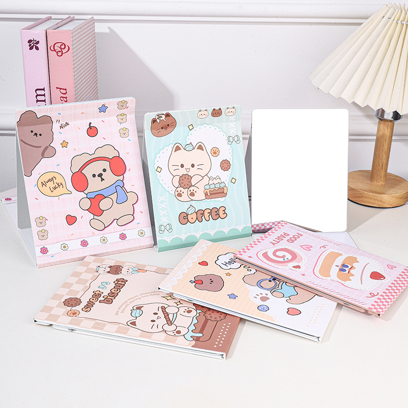 Plantronics 만화 풀 스크린 종이 거울 학생 여성 코팅 접이식 테이블 거울 화장품 거울 휴대용 초박형 뷰티 미러스토어 가기