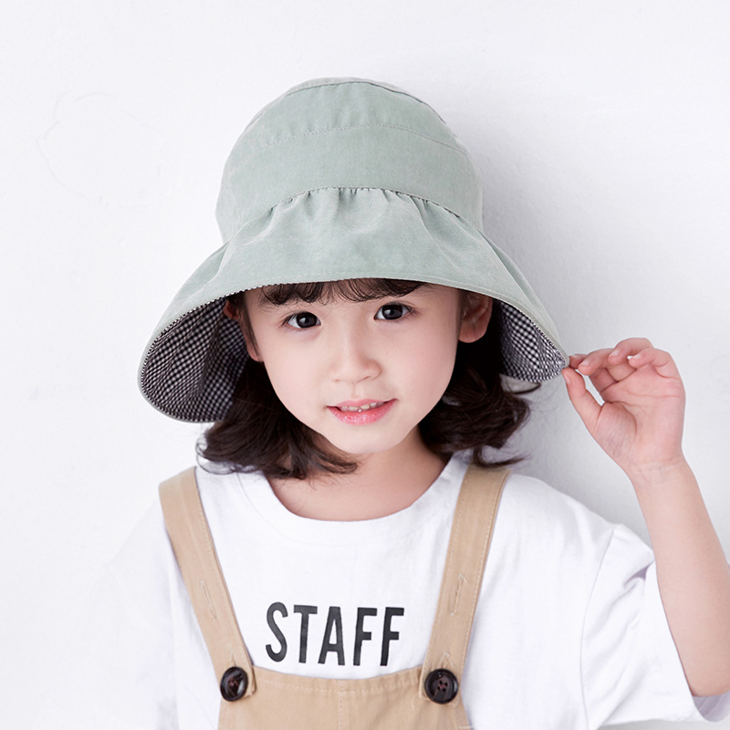 어린이용 여름용 체크무늬 햇빛 가리개 모자, 부모-자녀용 어린이용 햇빛 가리개 어부 모자, 통기성 좋은 큰 챙 모자
