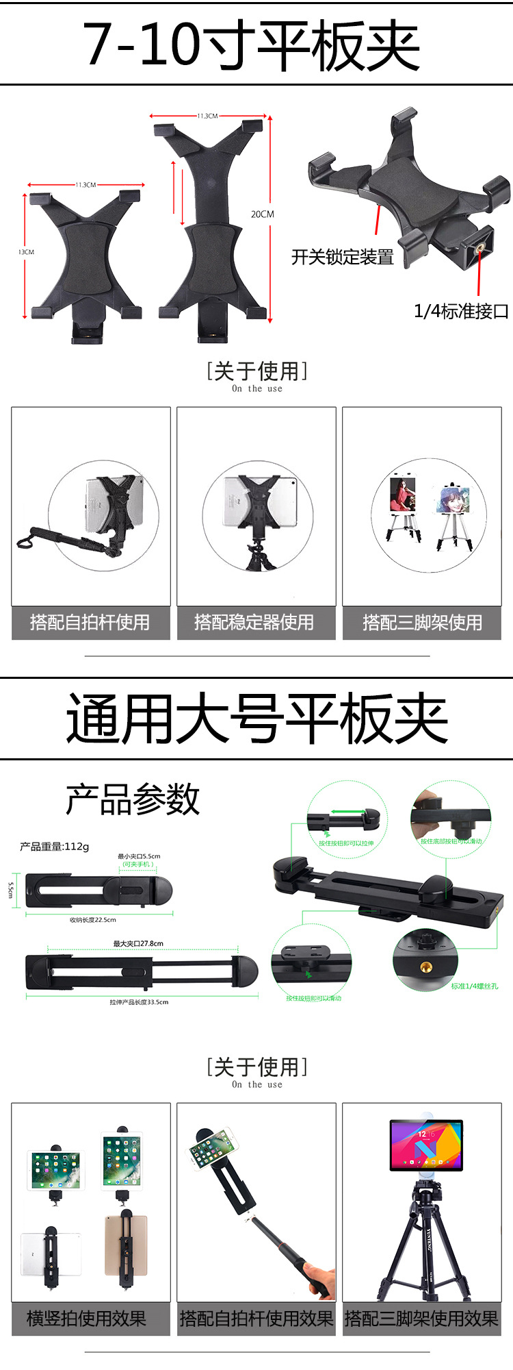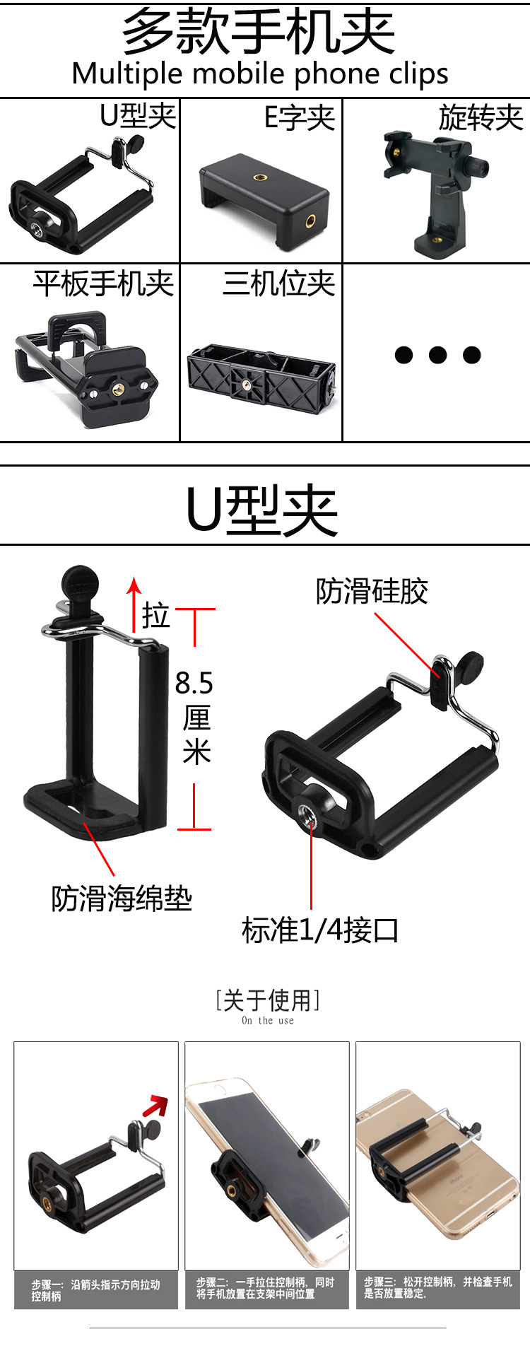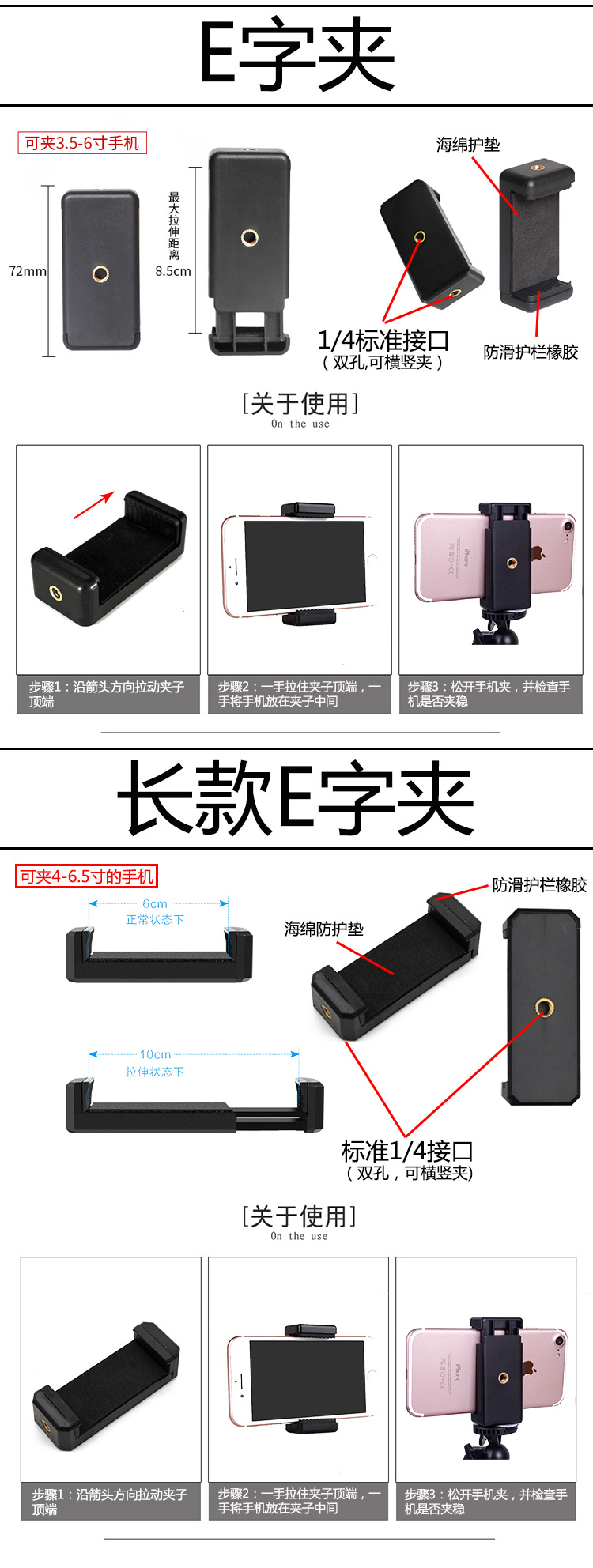 • 대형 셀카 스틱 잠금 + E 클립 (3-3.5cm)