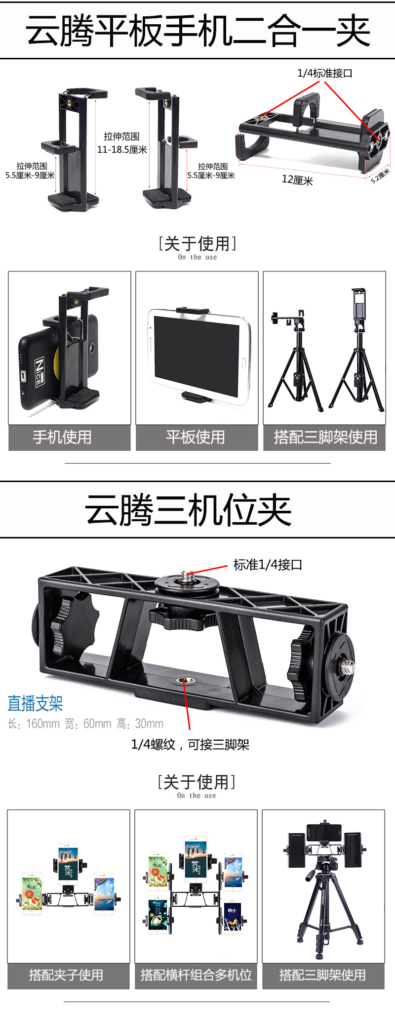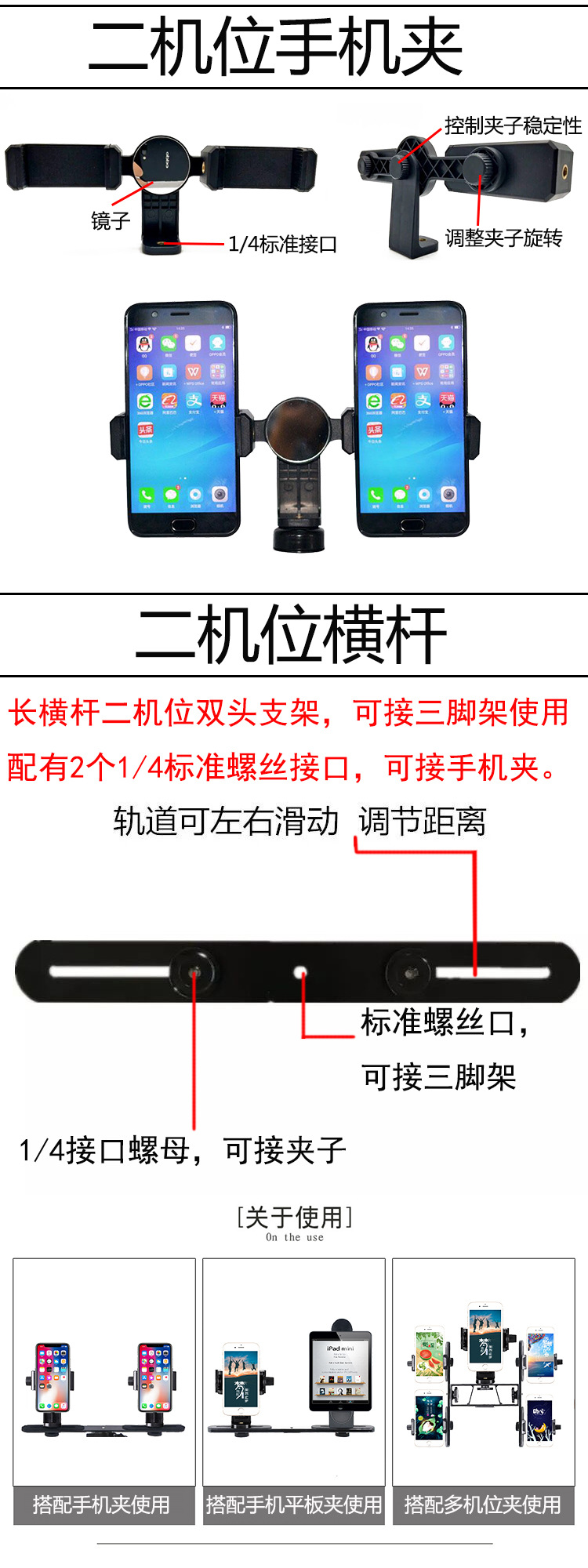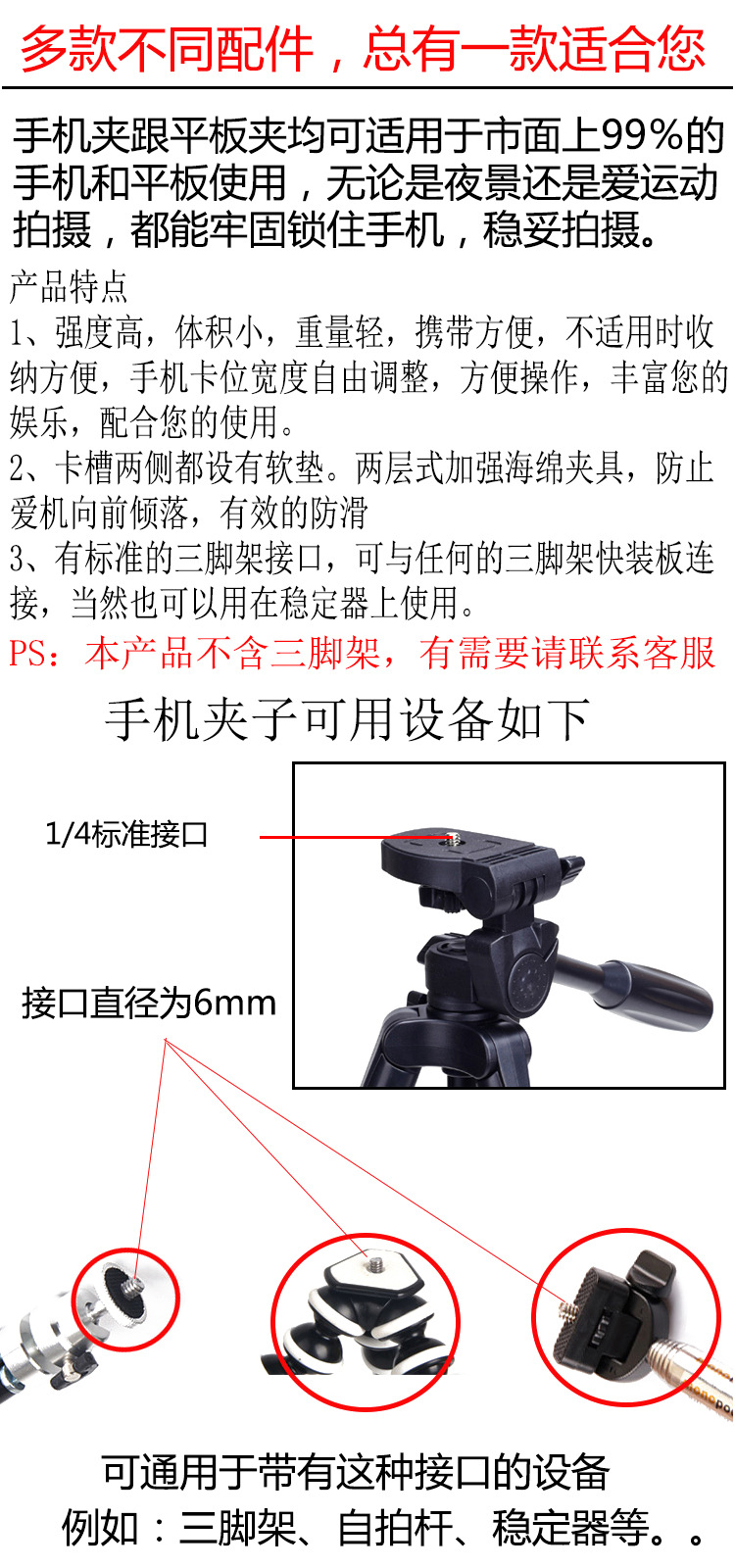 범용 휴대 전화 라이브 방송 브래킷 나사 클립 헤드 액세서리 이중 위치 카메라 삼각대 헤드 고정 기본 각도스토어 가기