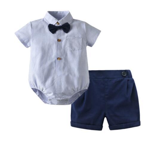 재고 여름 크로스 보더 영국 아기 점프 슈트 남성 아기 신사 세트 면 짧은 소매 등산 머리카락의 세대를 세트
