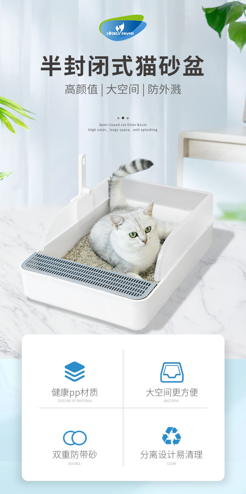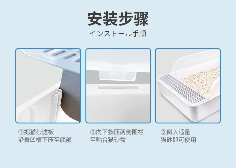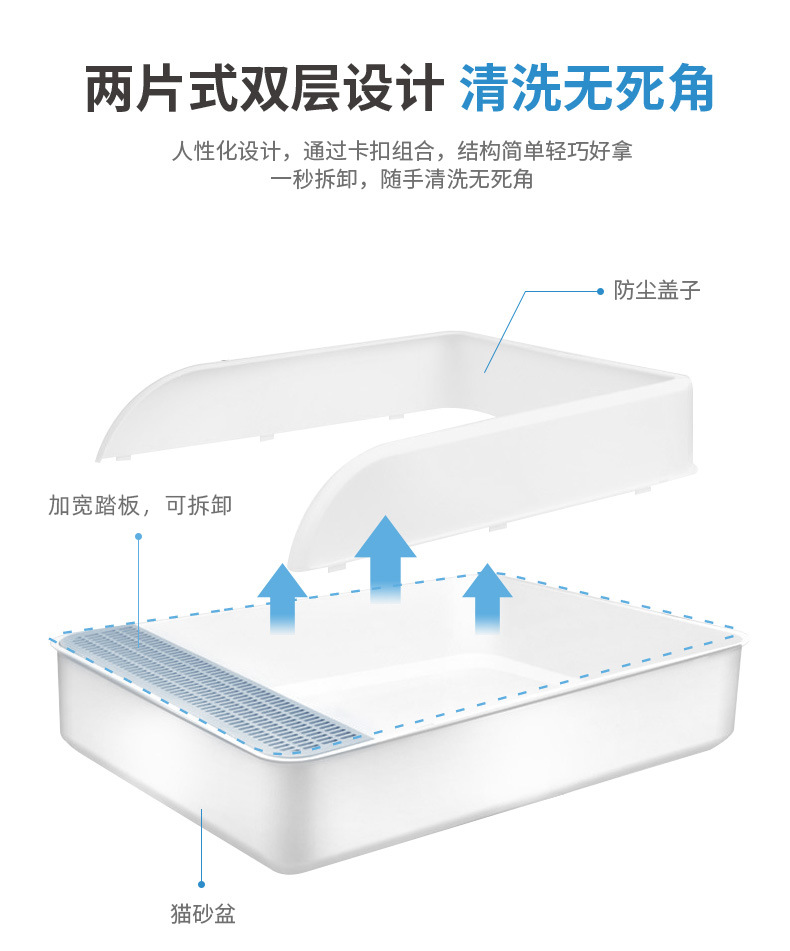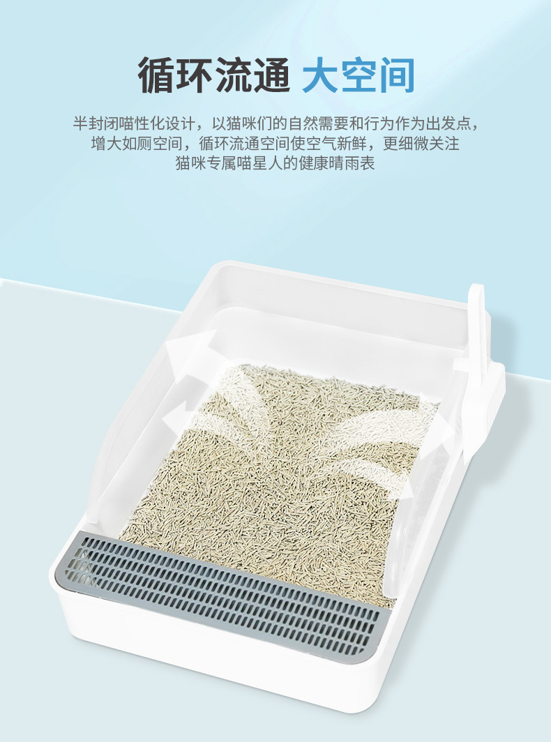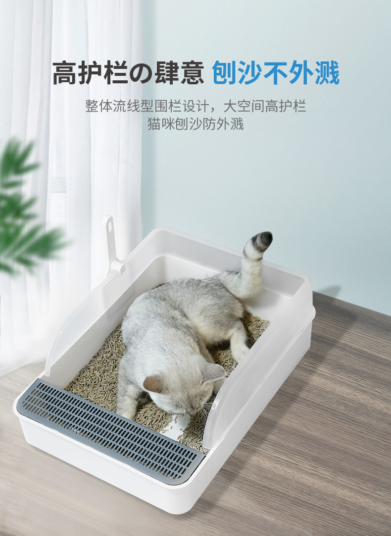 대형 오픈 반폐쇄 고양이 쓰레기통 물놀이 방지 고양이 쓰레기통 고양이 쓰레기통 분리형 애완 동물 고양이 화장실 도매