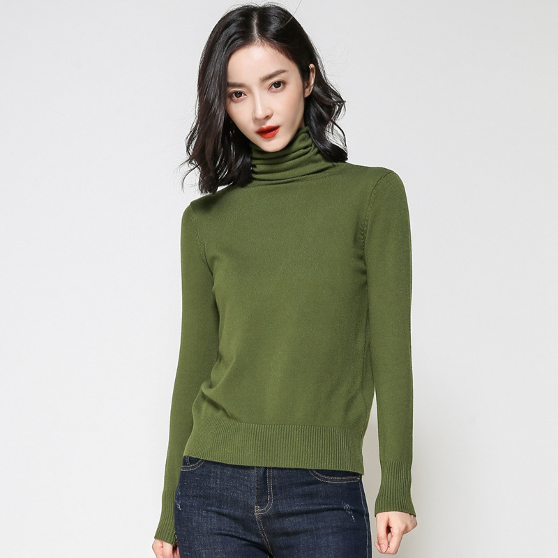 디딤넥 니트 이너웨어 가을 겨울 신상 여성용 한국 스타일 단색 풀오버 긴팔 니트 숏 하이넥 스웨터