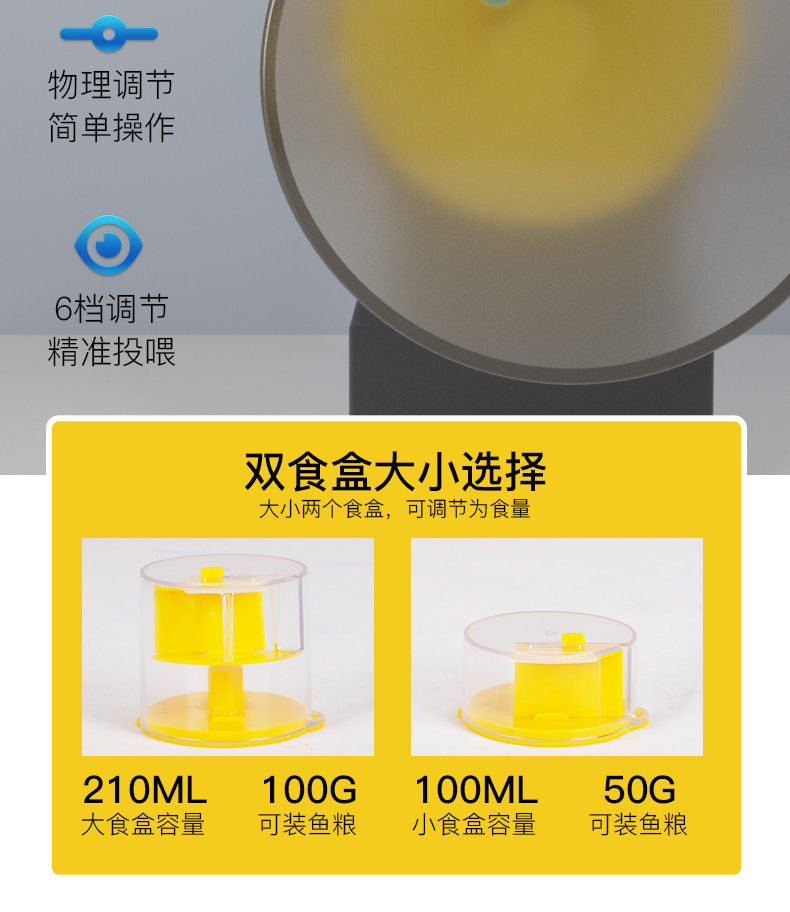 2关于喂食量:喂食器可设置12小时1次和24小时一次,根据您鱼食品种设置喂食器开口,建议少喂多餐,慢慢调整合理喂食量,避免投食过多污染水质。