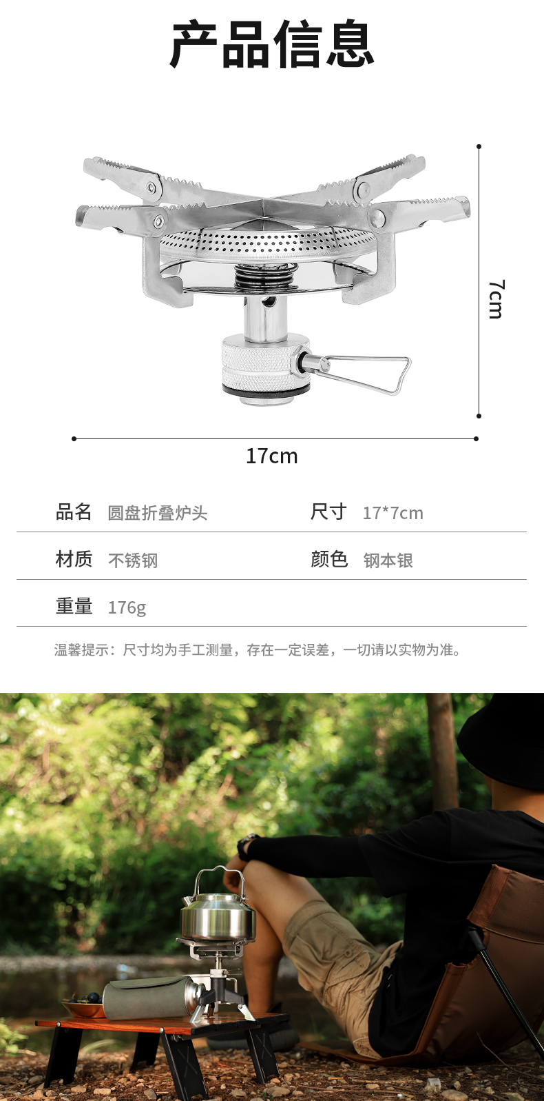 备注:可配专用转换头,安全使用220g卡口式丁烷气