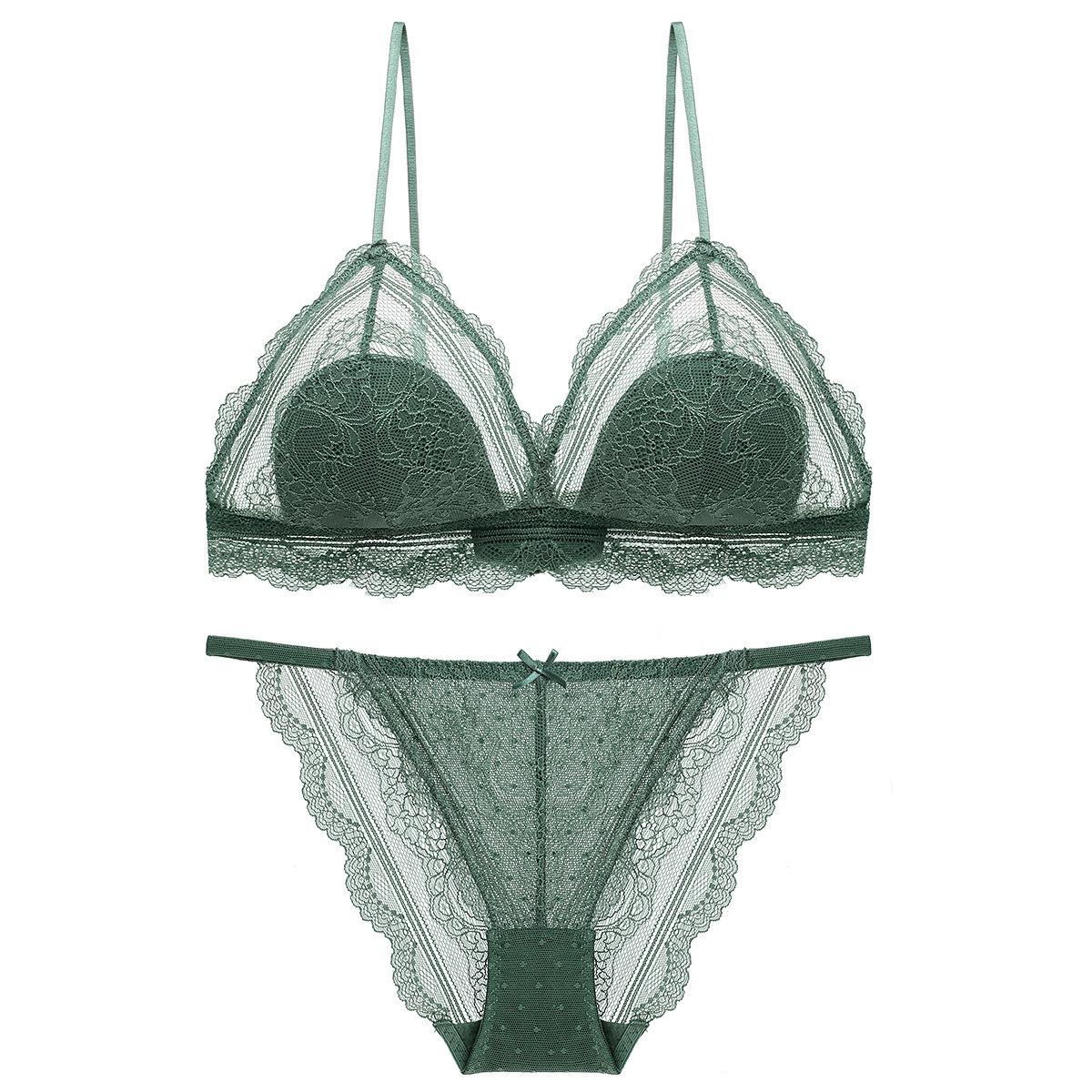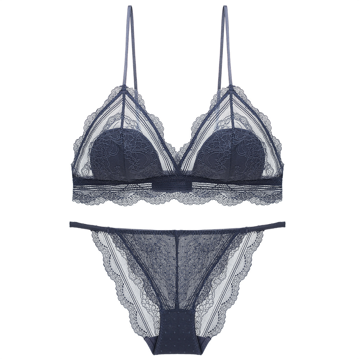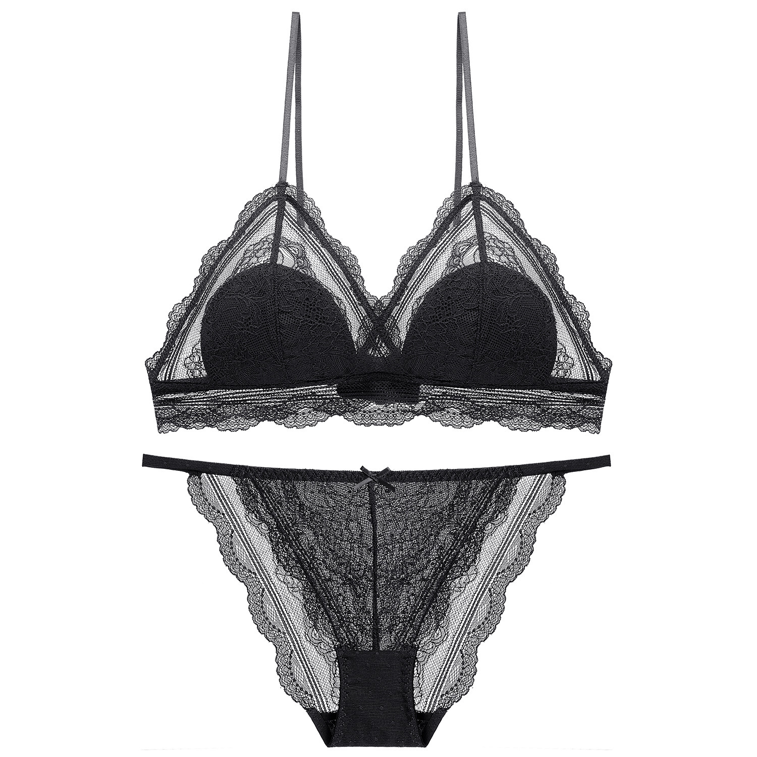 2019 신상품 레트로 림 레이스 얇은 편안한 브래지어 세트 프랑스 스타일 섹시한 삼각형 컵 여성 속옷스토어 가기