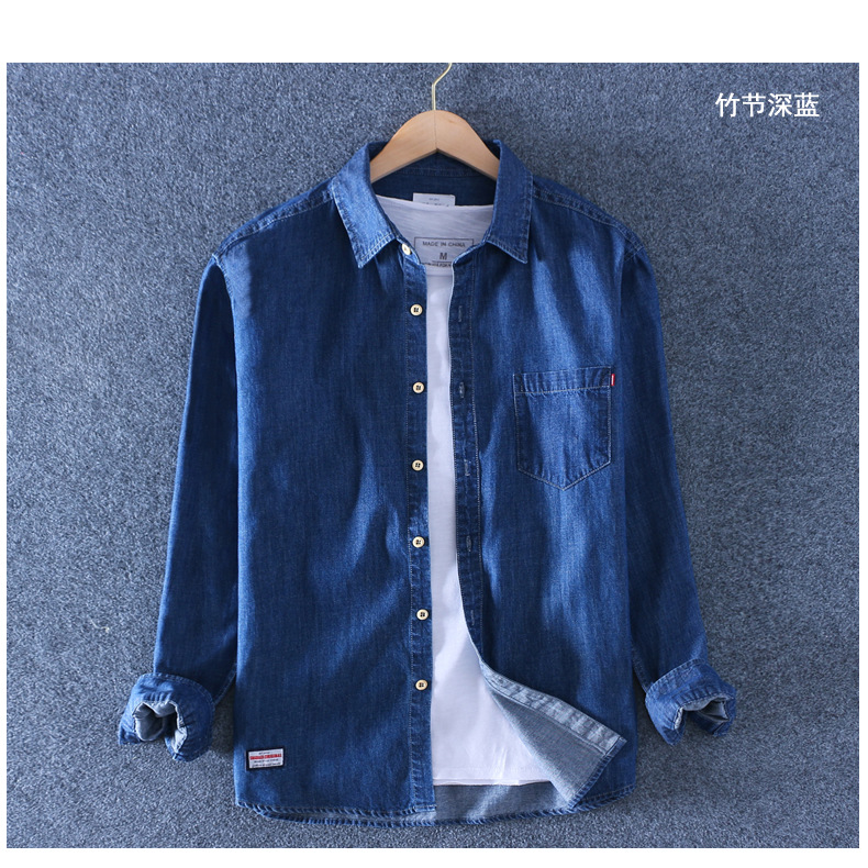 순면 데님 셔츠 남성용 긴팔 봄 얇은 스타일 루즈핏 캐주얼 남성복 상의 워시드 순면 소프트 셔츠 자켓스토어 가기