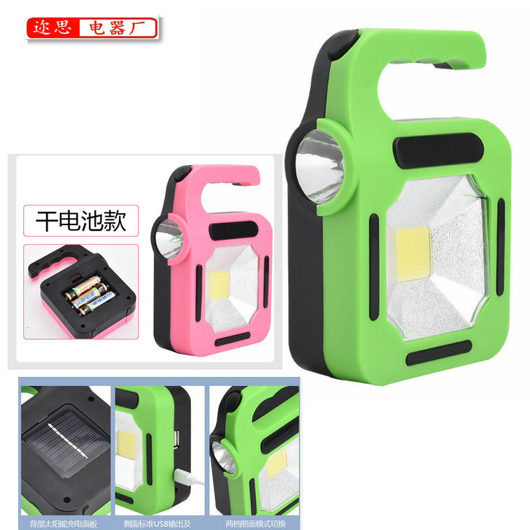 크로스 보더 야외 휴대용 램프 손전등 태양열 COB 캠핑 램프 USB 충전식 캠핑 작업등 포함