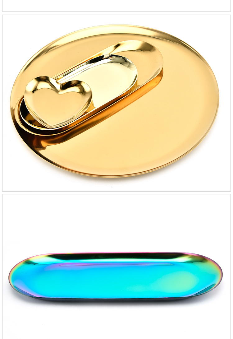 유럽식 금속 트레이 골든 미니멀리스트 스테인레스 스틸 보관 플레이트 장식 장식품 창조적 인 장식 홈 액세서리