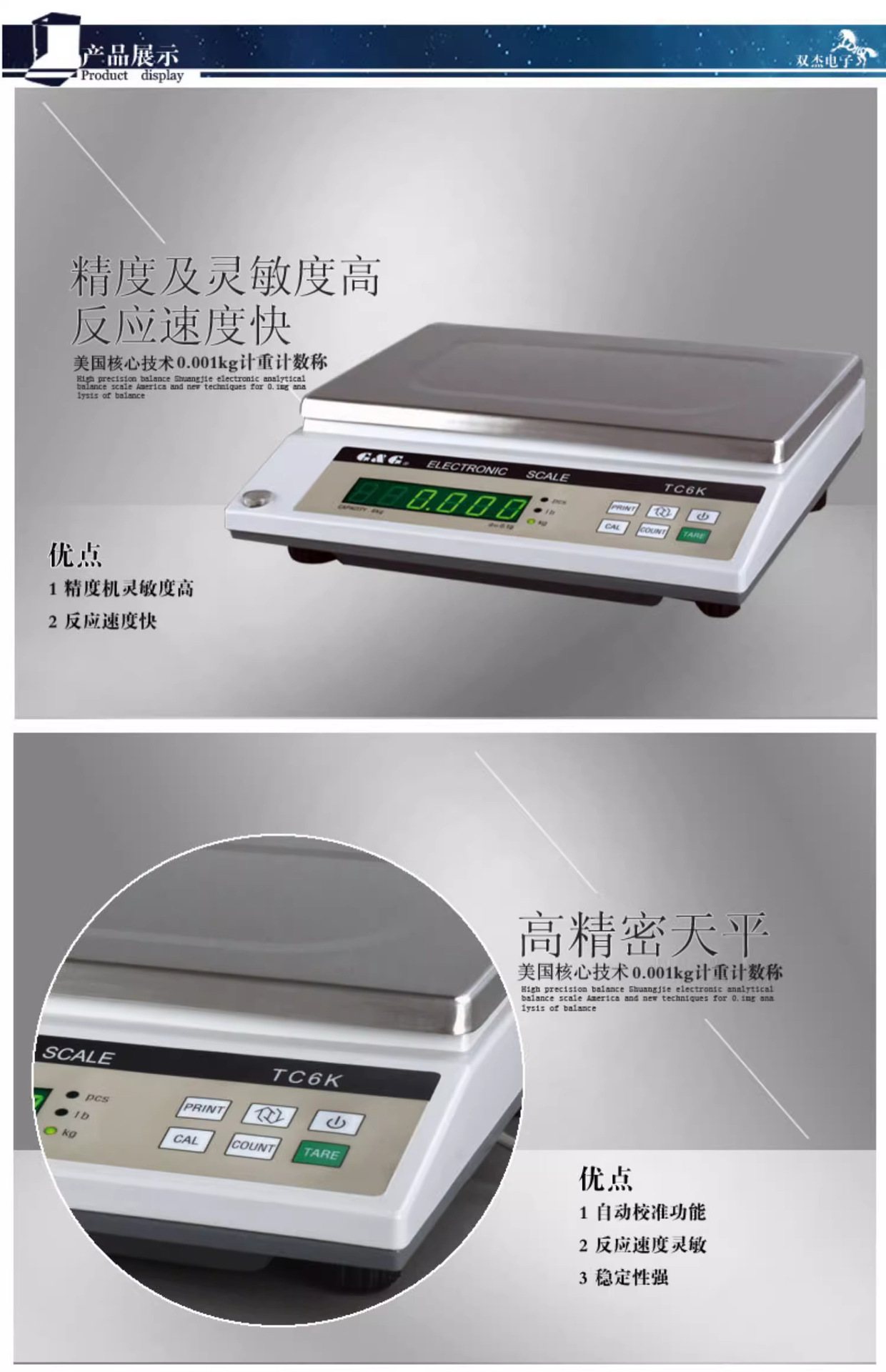 TC3KA/6KA/10KA/30KA/20KA双杰电子天平TJY6KY-0.1电子称计数秤