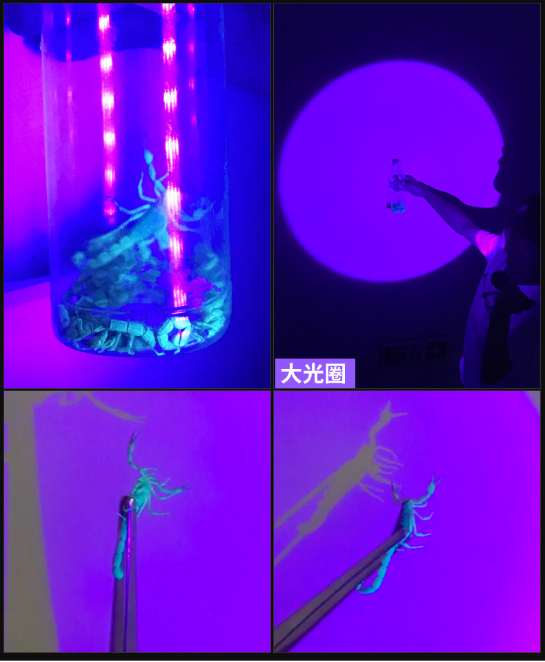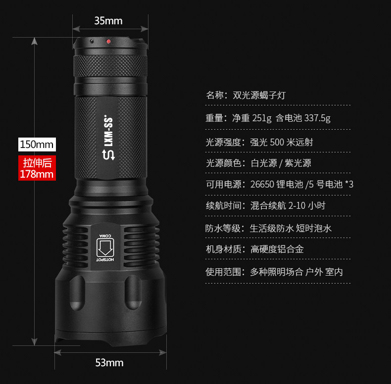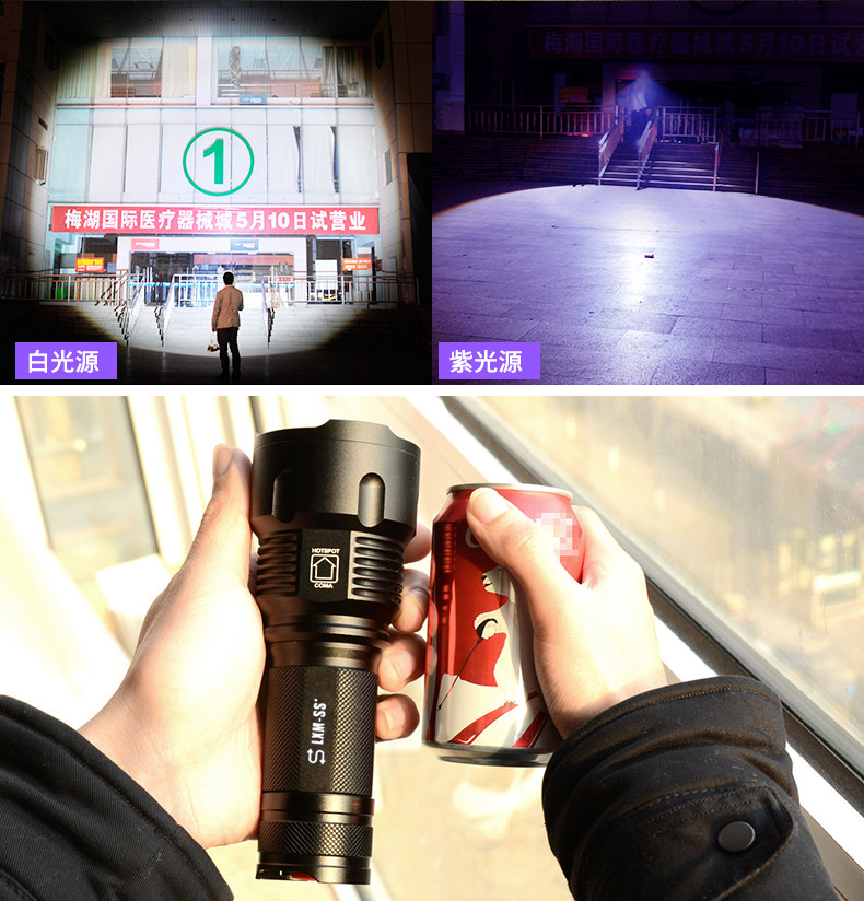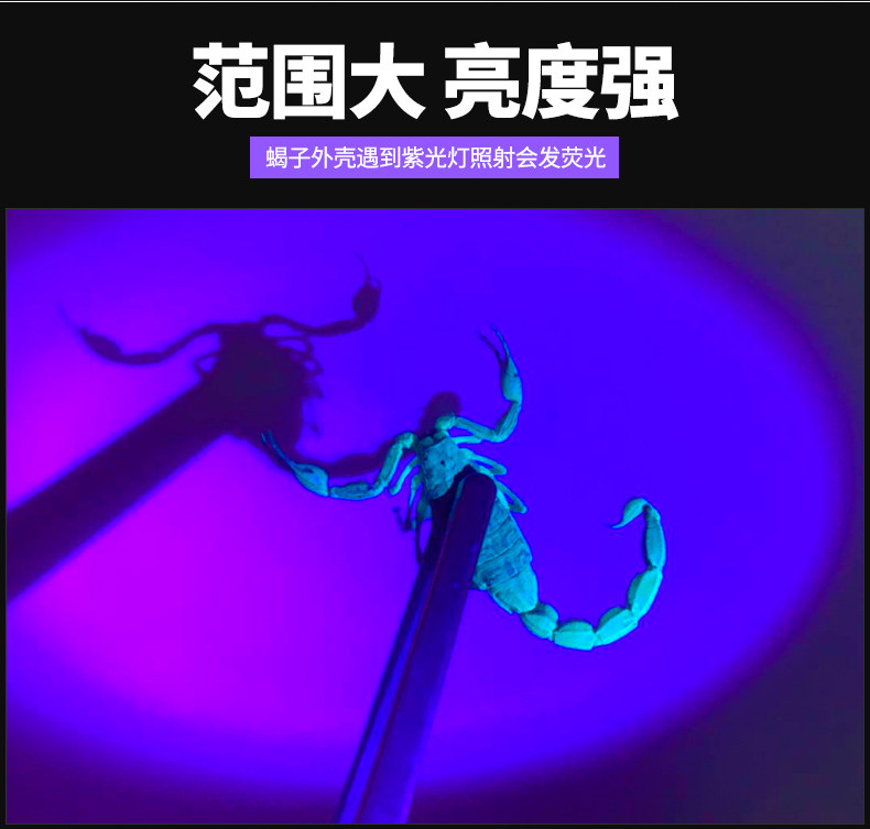 전갈 램프 특수 LED 슈퍼 브라이트 퍼플 라이트 손전등 화이트 퍼플 더블 광원 야외 장거리 줌스토어 가기