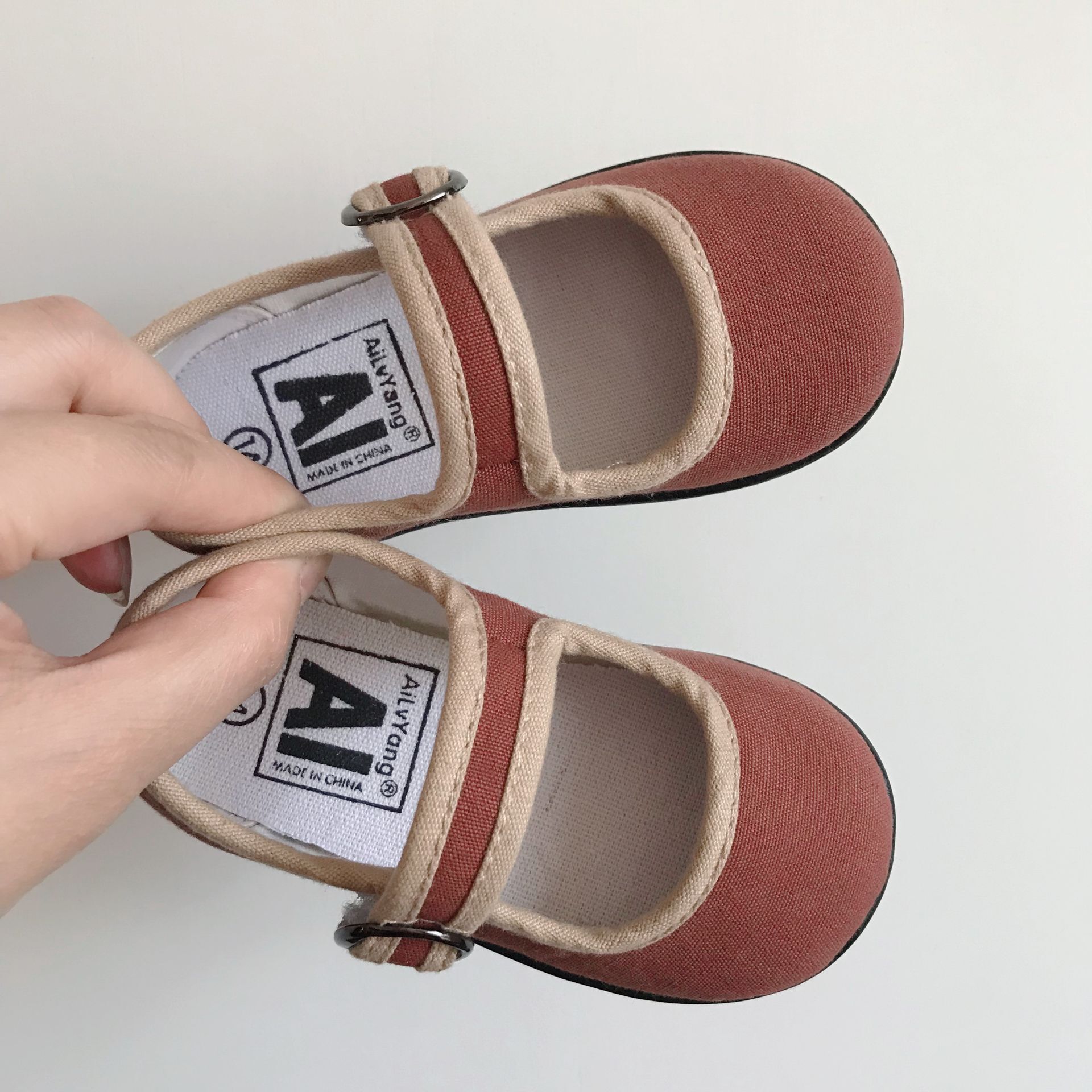 봄 새로운 한국 소녀 부드러운 바닥 우유 신발 유치원 실내 사각형 입 아기 캔버스 신발 1-7 세