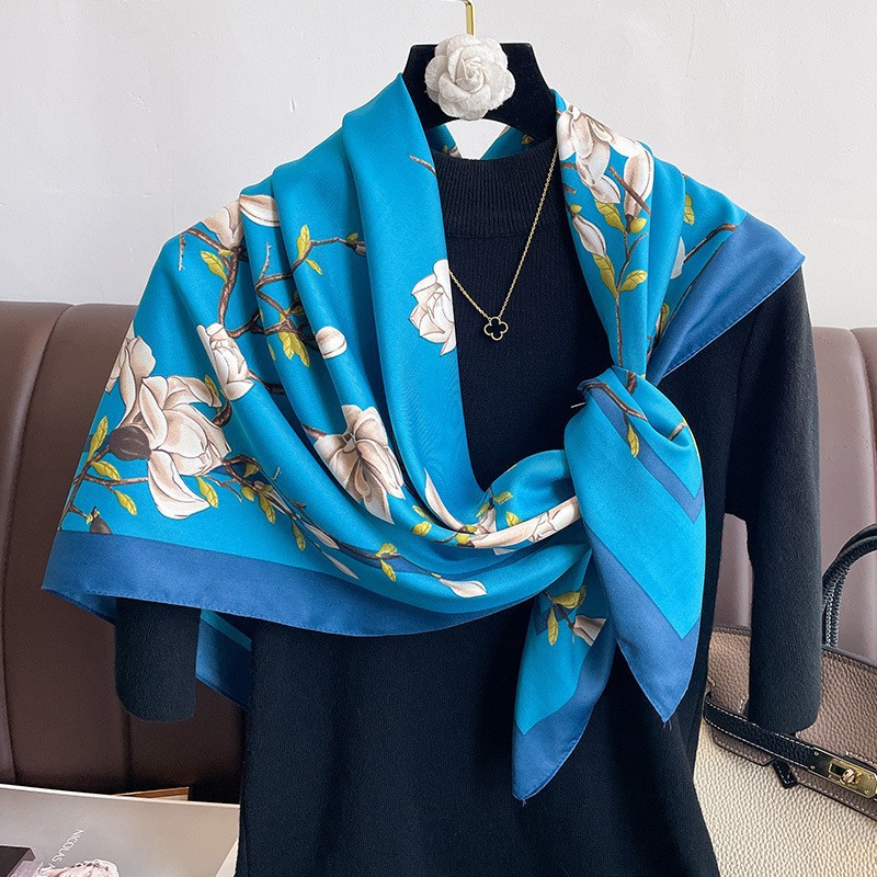 여름 새로운 패션 스카프 여성 해군 스타일 전문 광장 실크 모방 90 목도리 유럽과 미국 선 스크린 실크 스카프