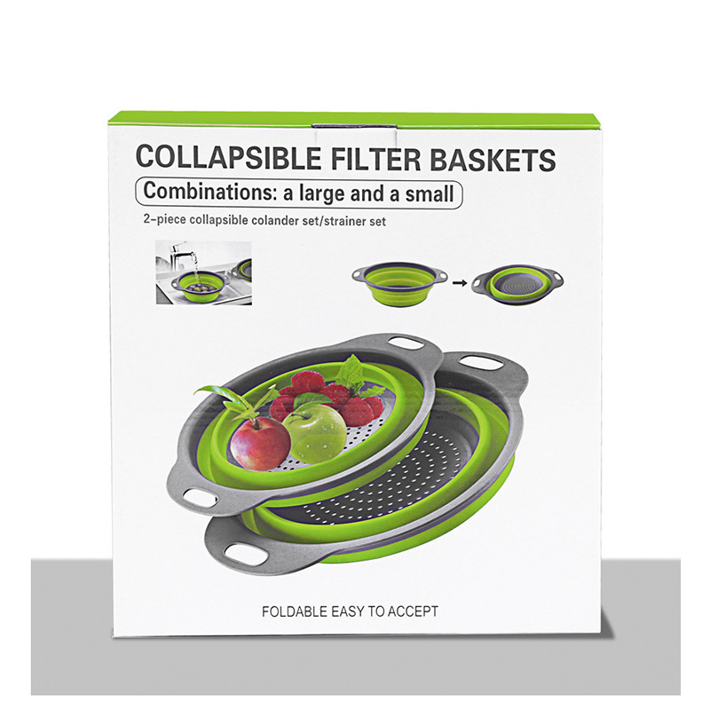 아마존 폭발 접이식 배수 바구니 라운드 필터 바구니 텔레스코픽 접이식 과일 블루 2 종 세트 과일 용품