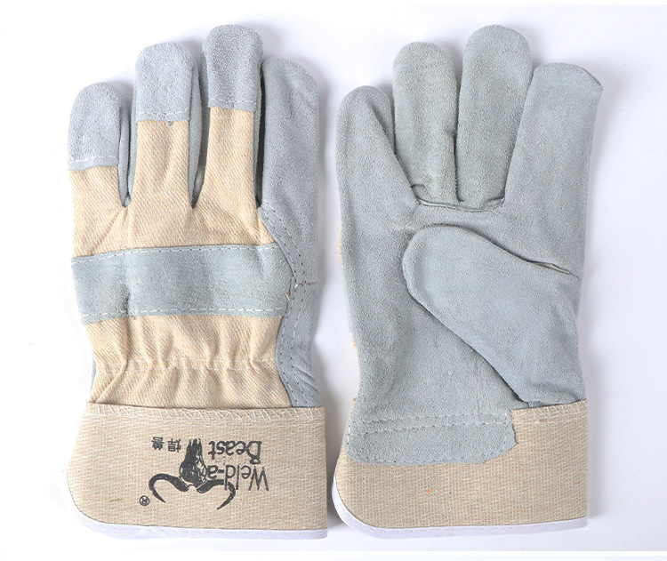 공장 직접 용접 짐승 짧은 반 가죽 장갑 흰색 천 2 층 천연 컬러 가죽 짧은 용접기 장갑