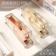 亚克力透明订书机高颜值玫瑰金学生大号省力订书器办公用品装订机