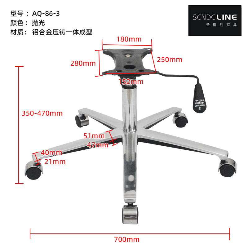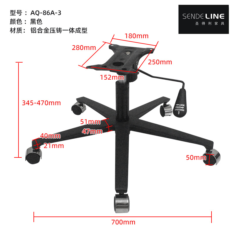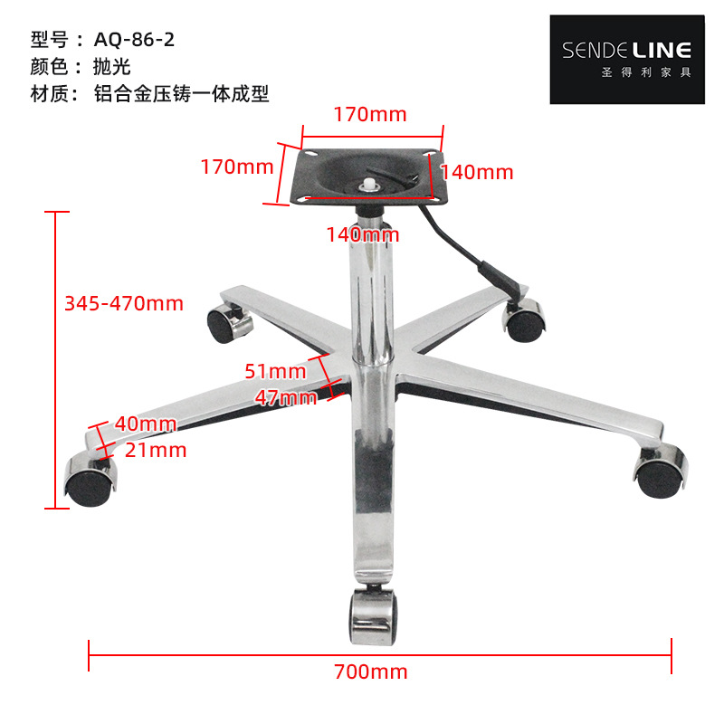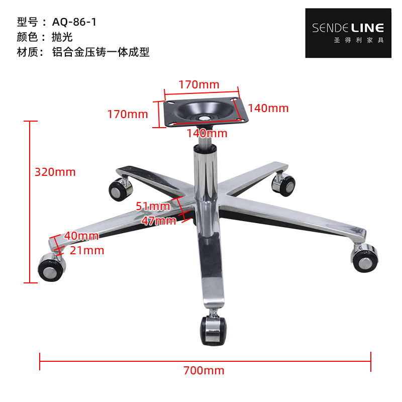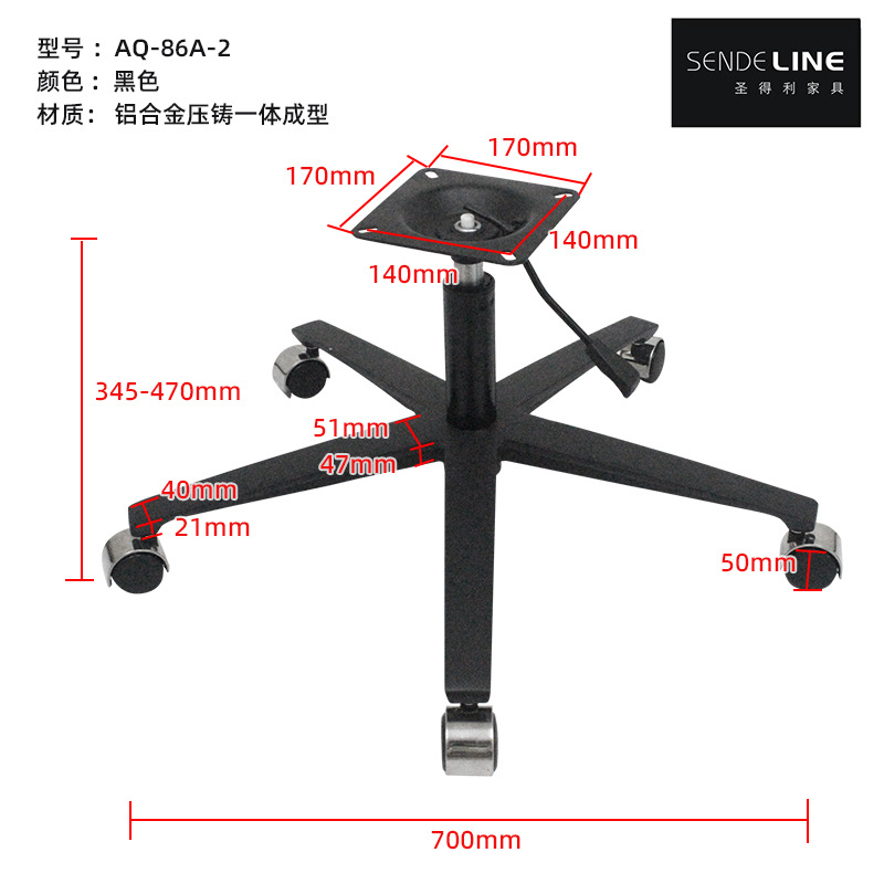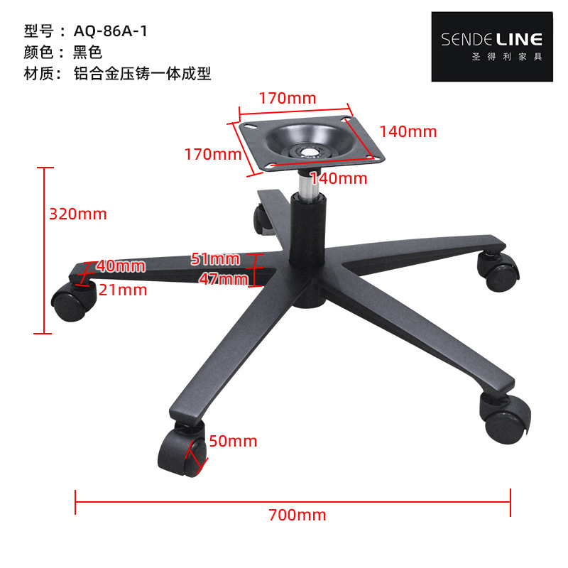 사무실 의자 회전 의자 액세서리 알루미늄 합금 5 성 발 알루미늄 합금 하드웨어 발 받침대