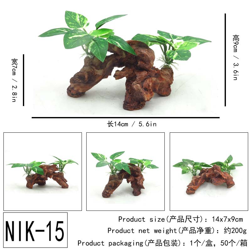 실제 수족관 공장 도매 시뮬레이션 침몰 나무 머리 모양 현실적인 수족관 풍경 장식 나무 시뮬레이션 대추 잎스토어 가기