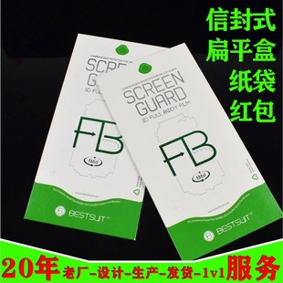 定制钢化膜单片装包装盒面膜信封式双边盒彩色印刷表面烫彩金击凸