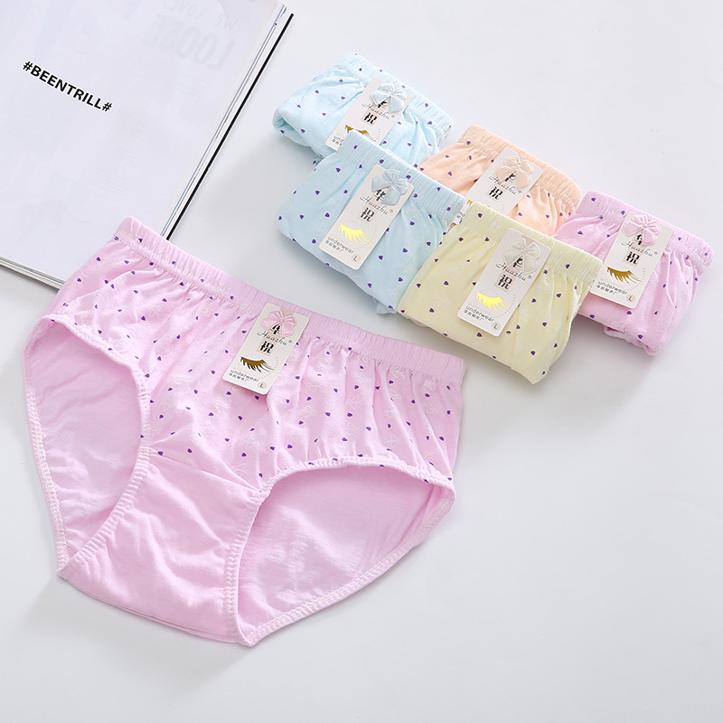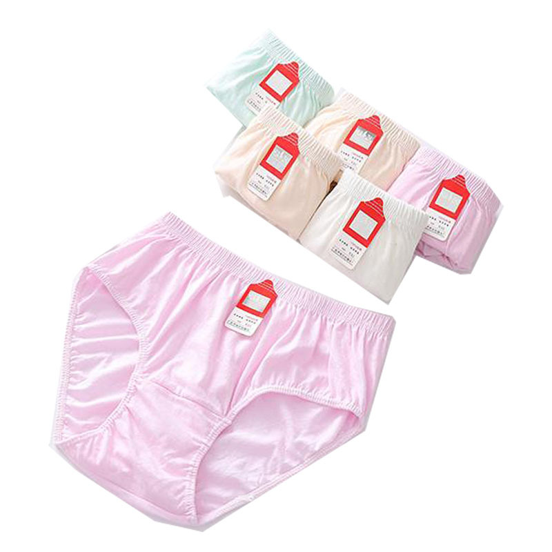 도매 숙녀 중간 허리 팬티 면 인쇄 느슨한 통기성 면 신선한 천연 단색 엄마 반바지