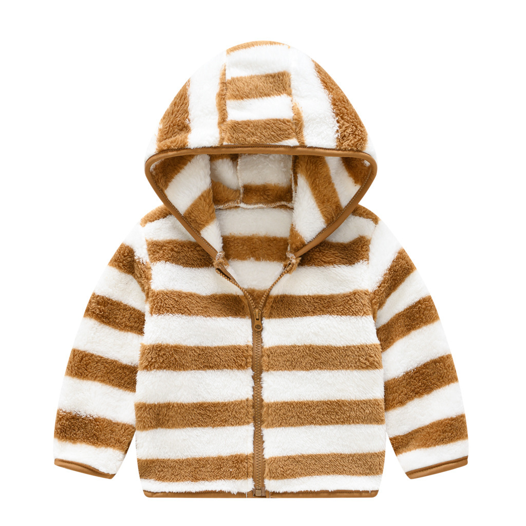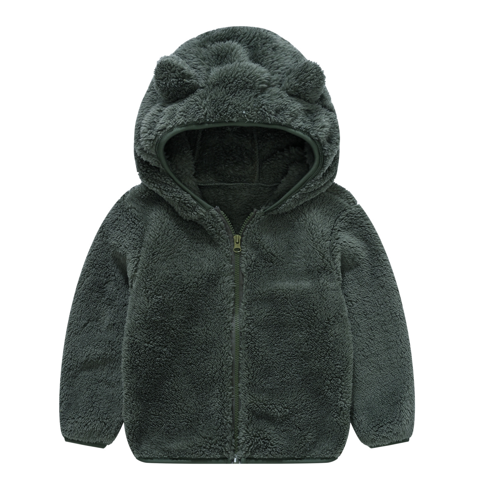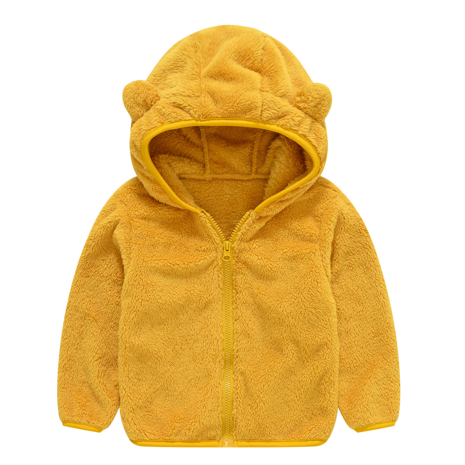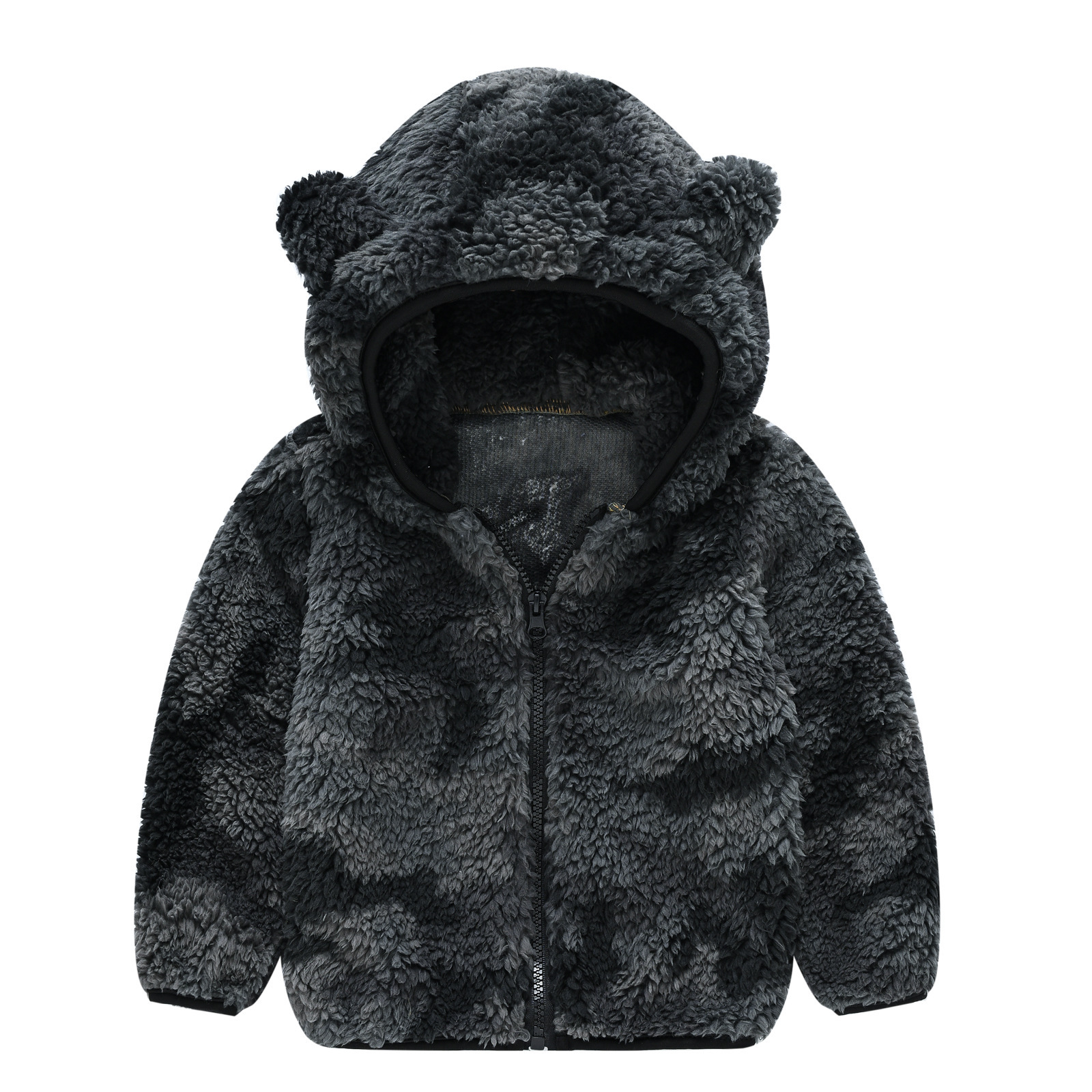 2024년 신상 가을 겨울 아기 귀달린 코트 유럽 및 미국 스타일 단색 아동용 모피 스웨터 남녀 공용 후드티 상의스토어 가기