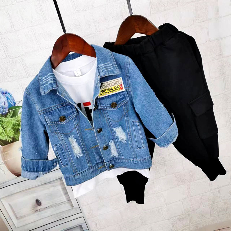 소년 데님 재킷 봄, 가을 2025 새로운 어린이 데님 재킷 아동 의류 한국 스타일 베이비 데님 탑 유행