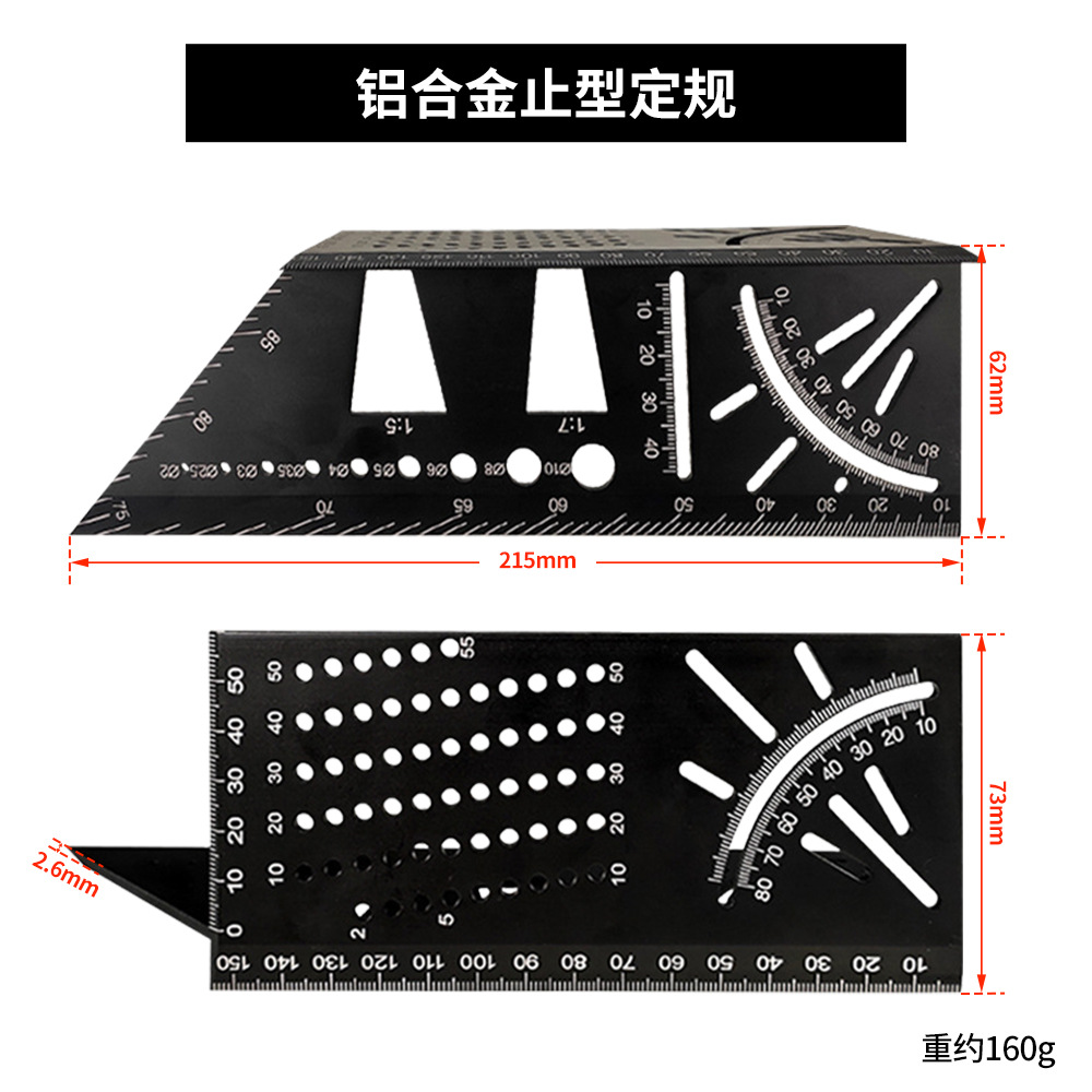 알루미늄 합금 다기능 목공 각도 눈금자 45 도 90 선 각도 눈금자 정지 유형 게이지