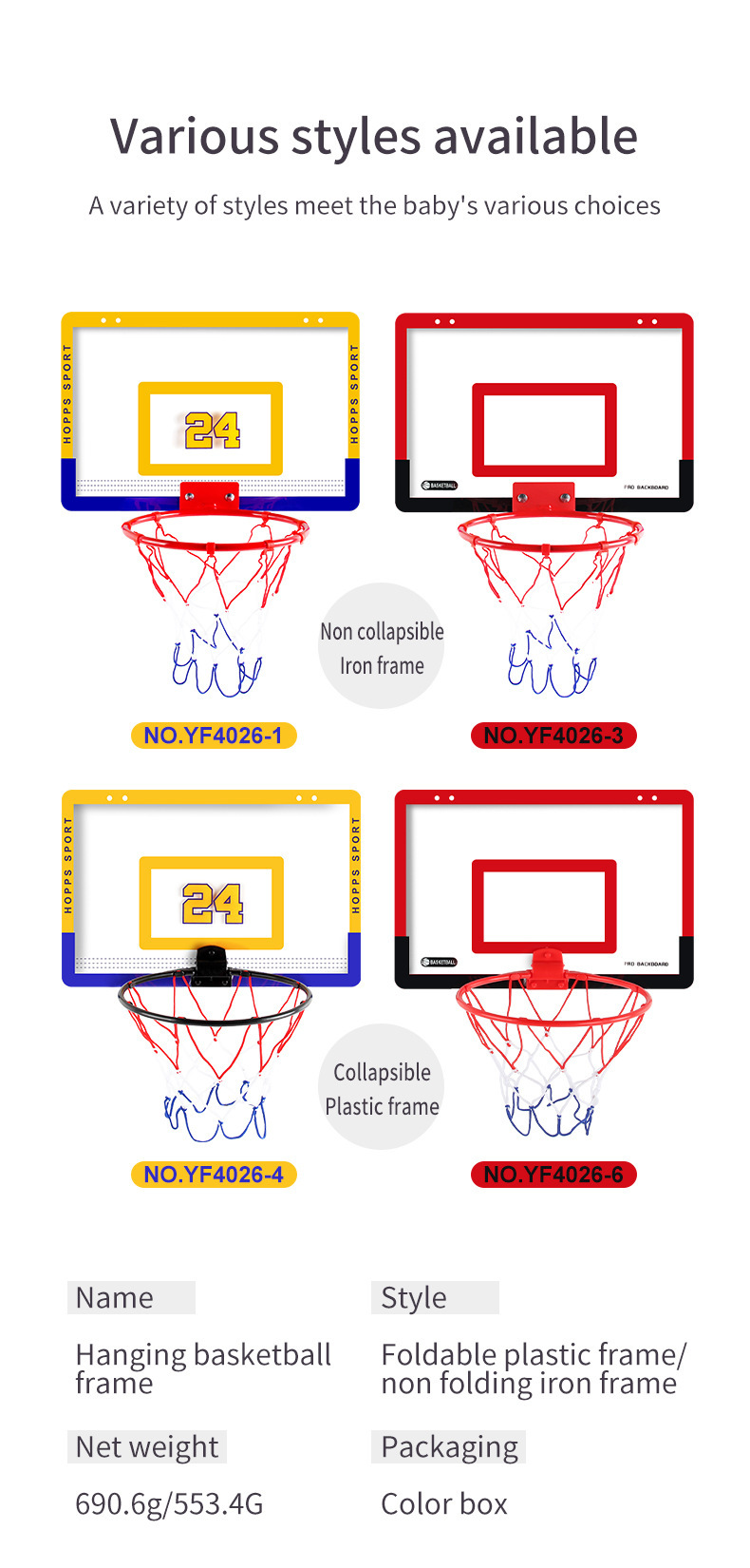 • 26CM 접이식 플라스틱 농구 프레임 + 볼 1개 무게 553.4g 용량 0.7kg