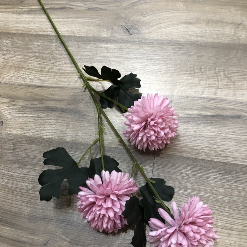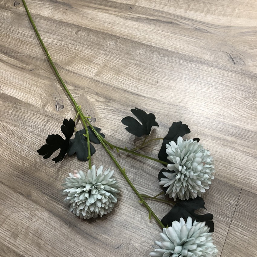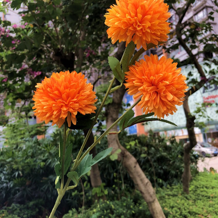 【品名】:3头情人球菊 【规格】:整枝长度约86公分,3个球菊花头,花头直径约8公分,带叶子。 【可选颜色】:白色,香槟,粉色,红色,橙色,蓝色 【用途】:可以用于直接插花瓶,插花配草,婚庆插花。