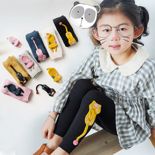 리틀 알파카 봄 한국 면 입체 만화 어린이 레깅스 동물 머리 팬티 스타킹 아기 크롭 바지