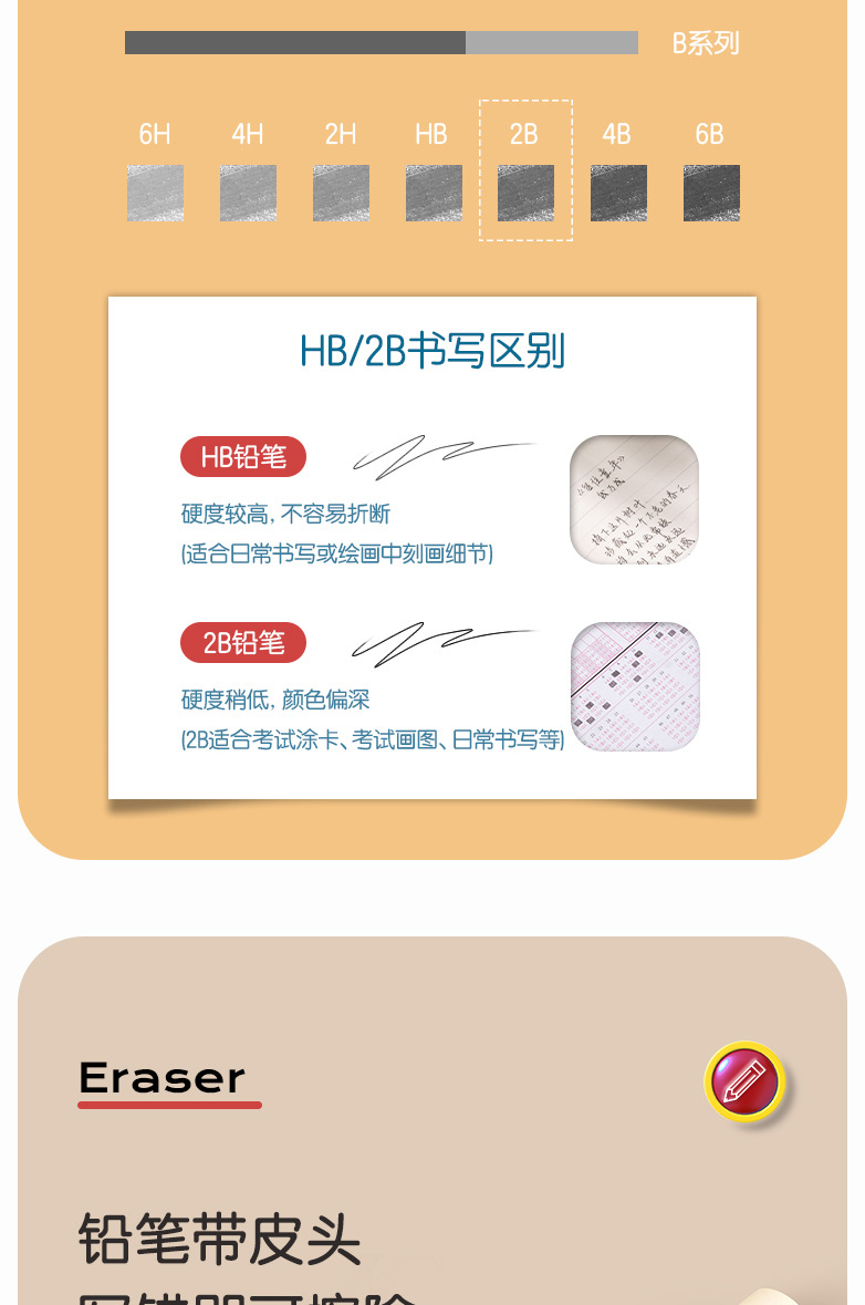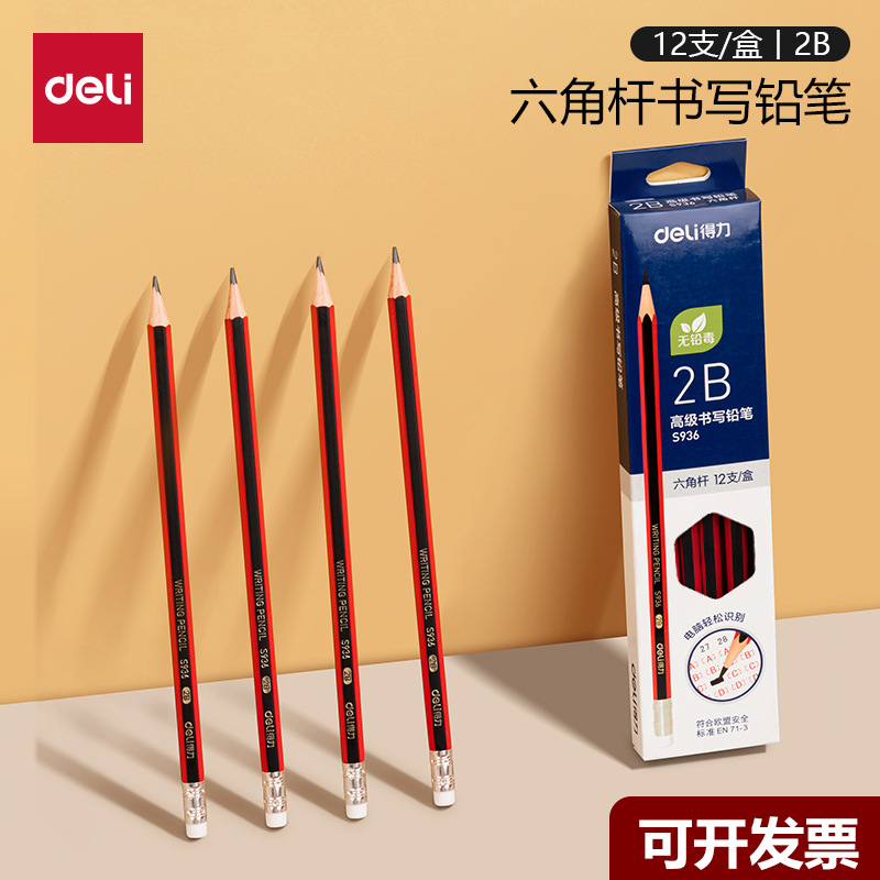 델리 S936 문구 연필 필기 연필 고무 헤드가있는 육각형 연필을위한 학습 사무실 여러 번